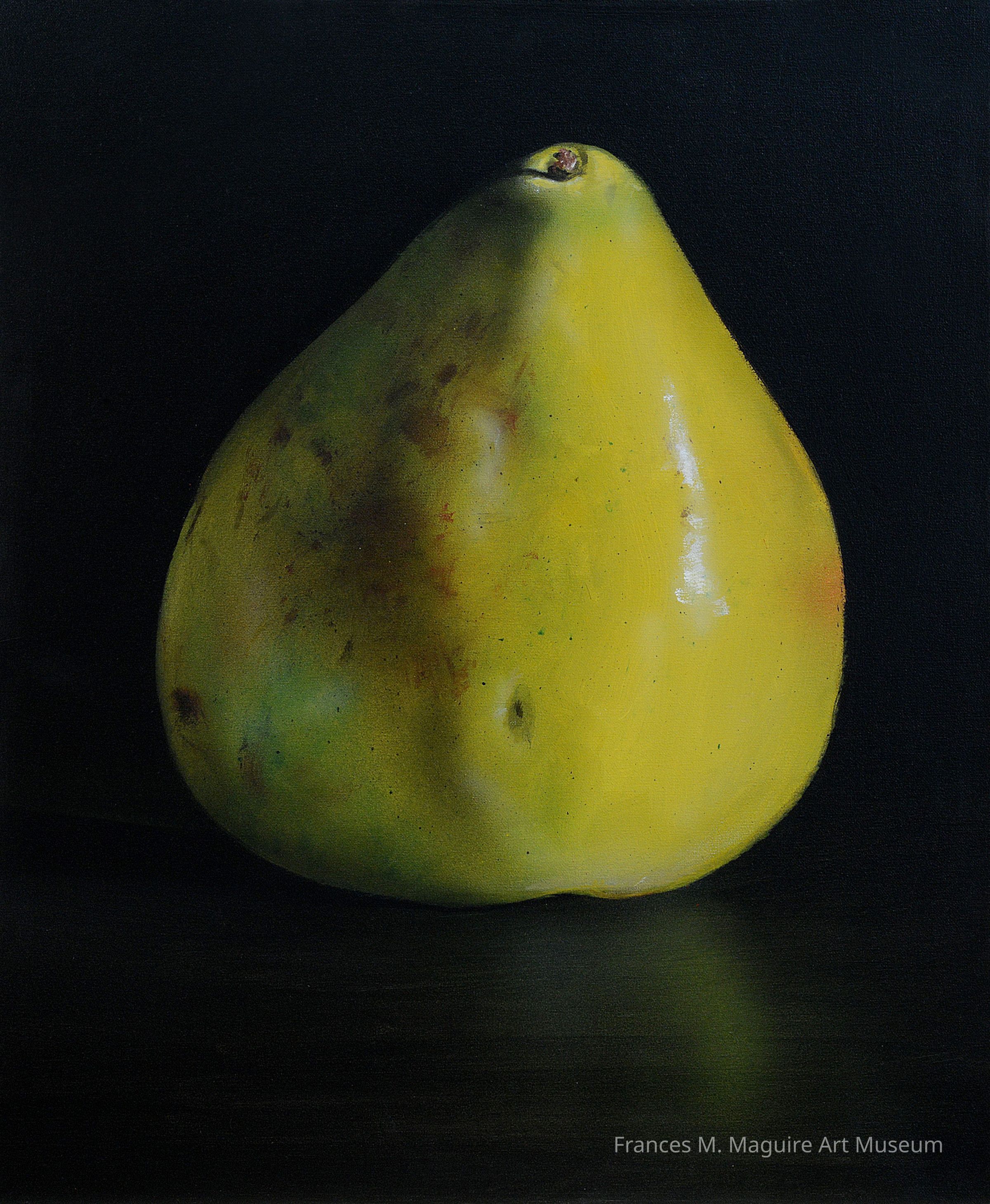 20th-c. oil painting of a yellow pear. Part of a group of three paintings of fruit.Made/Created