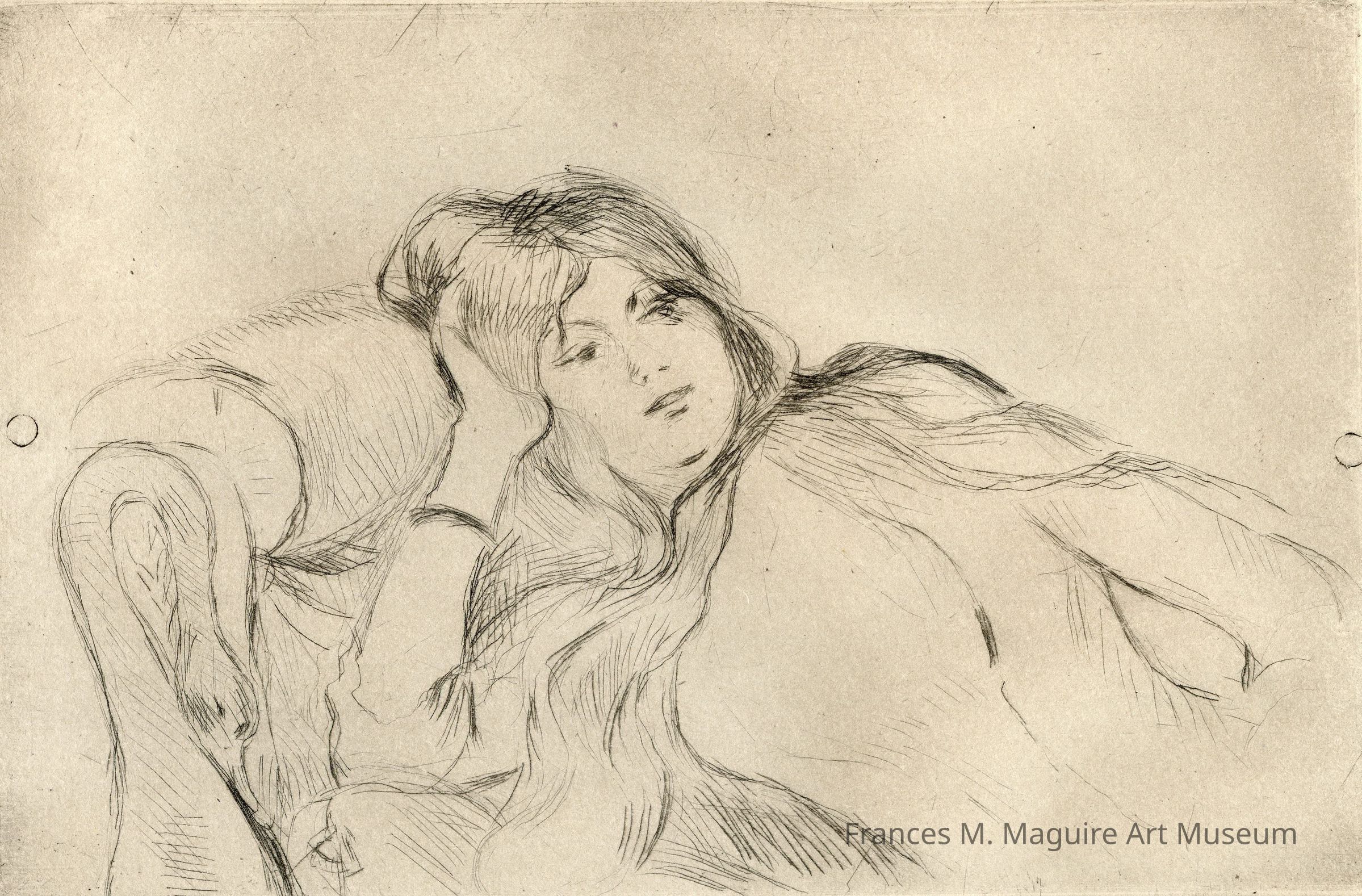 19th-c. drypoint depicting Julie Manet lounging by Berthe Morisot. Printed by Ambroise Vollard.