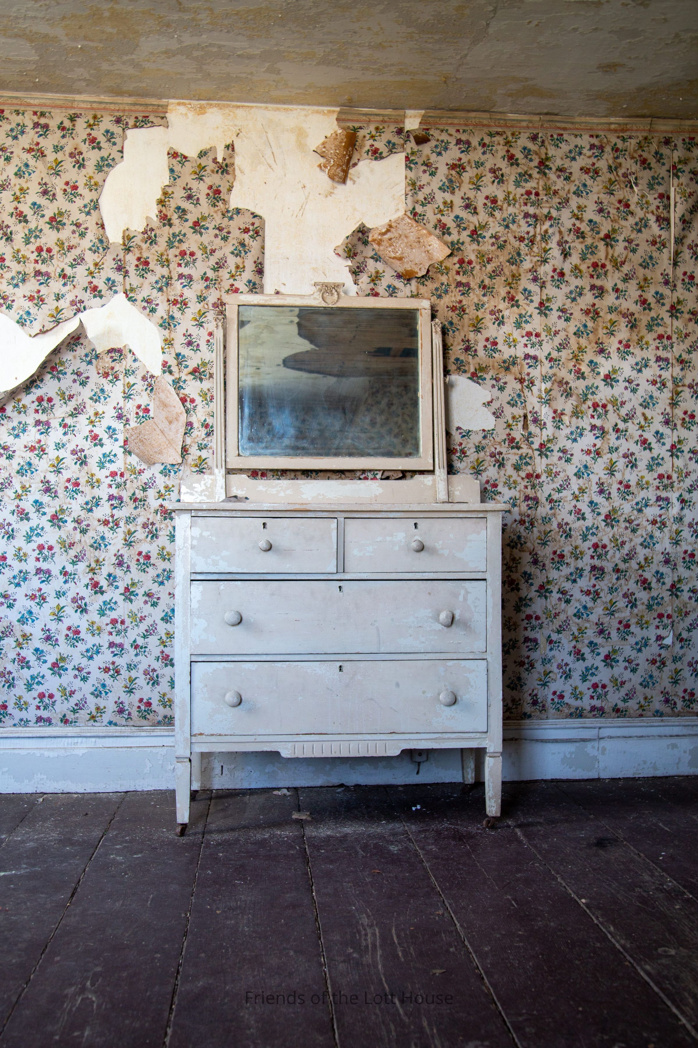 White painted wood dresser, having two short over two long drawers supporting a mirror swiveling on two side supportsUse
