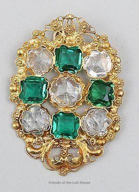 Pierced pendant with green and clear glass decoration. Turned into a pin. Goes with LH2019.05Category