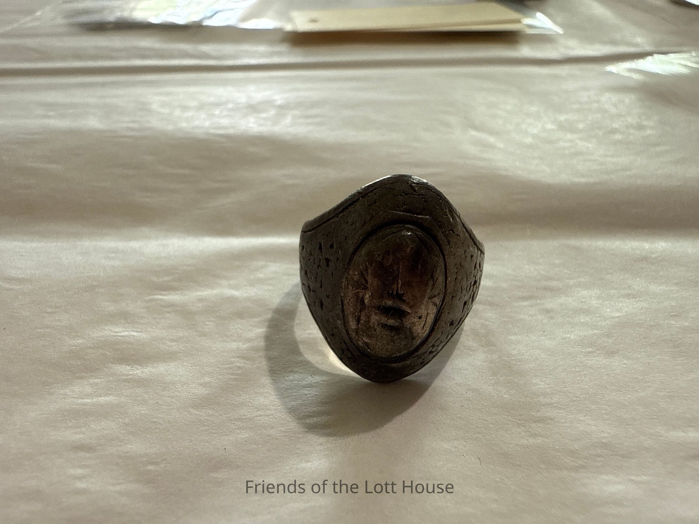 Oval ring similar in shape to a school ring. Too worn to discern any detail.Category