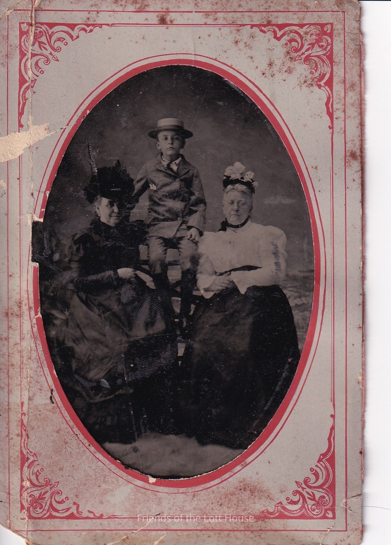 Framed photo portrait of two women sitting with a boy raised up in between themCollection