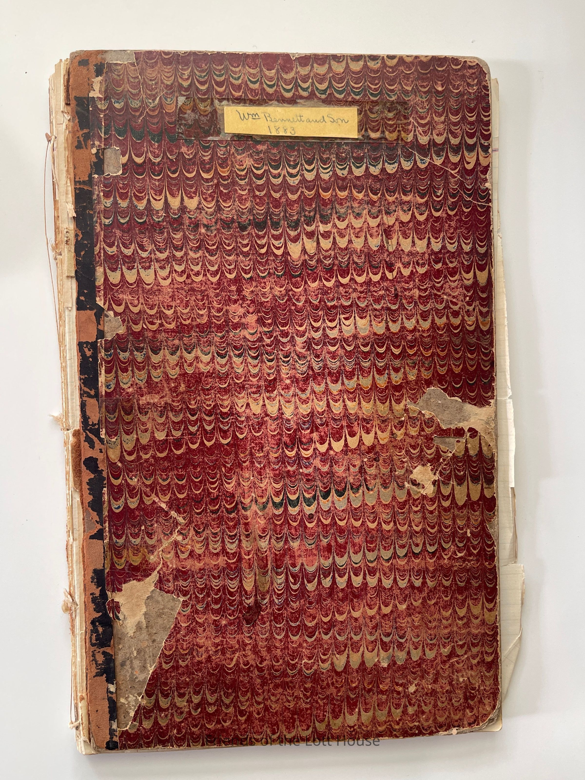 Ledger is in very poor condition. Front and back covers are fully detatched and pages show wear