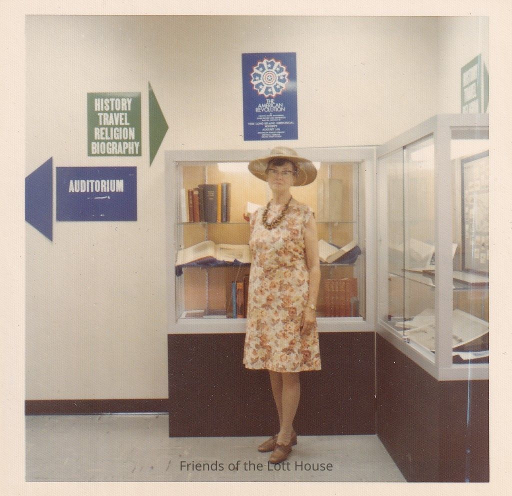 Photo of Gertrude Ryder Bennett at opening of an exhibit at Long Island Historical Society, 1974 as per message written on back.Collection