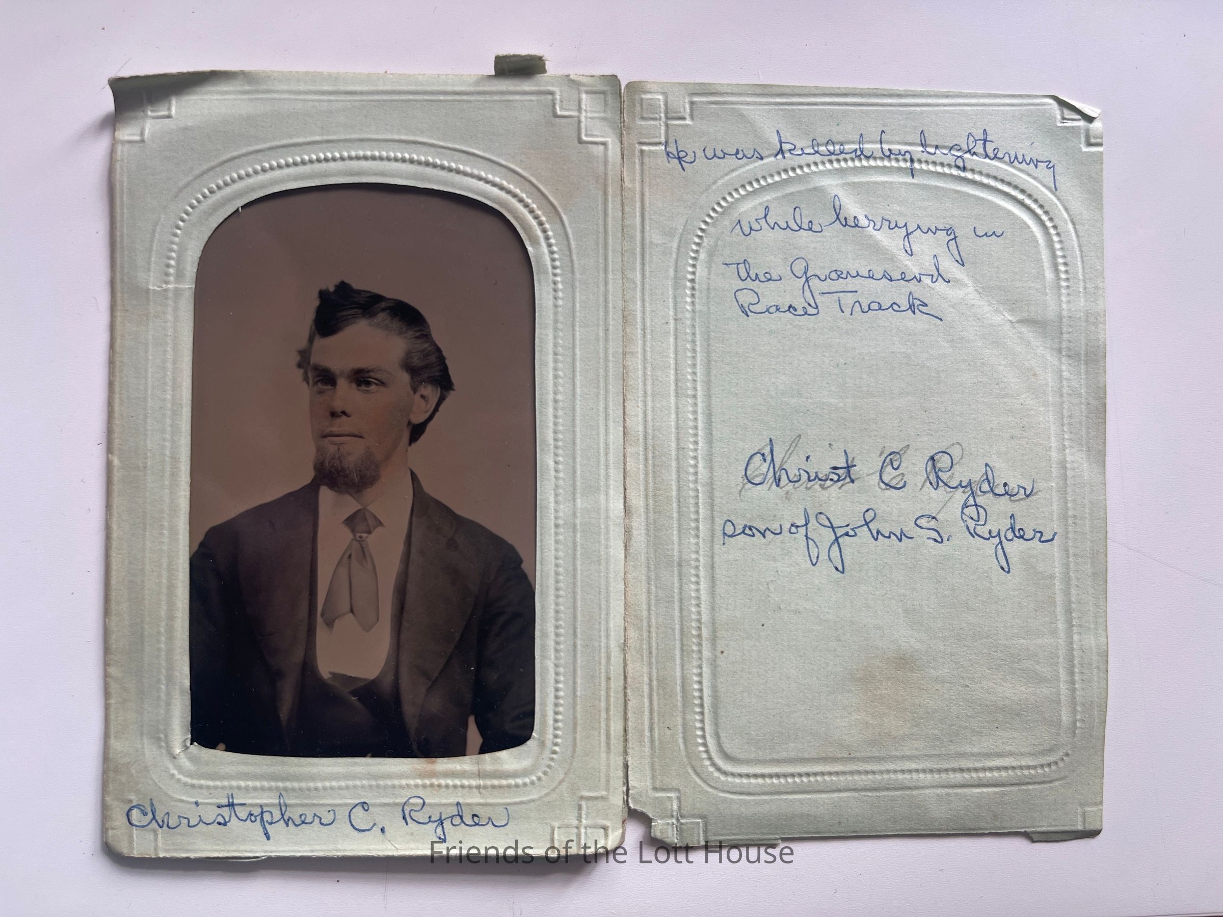 Christopher C. Ryder. He was killed by lightning while burying(?) in the Gravesend Race Track.Collection