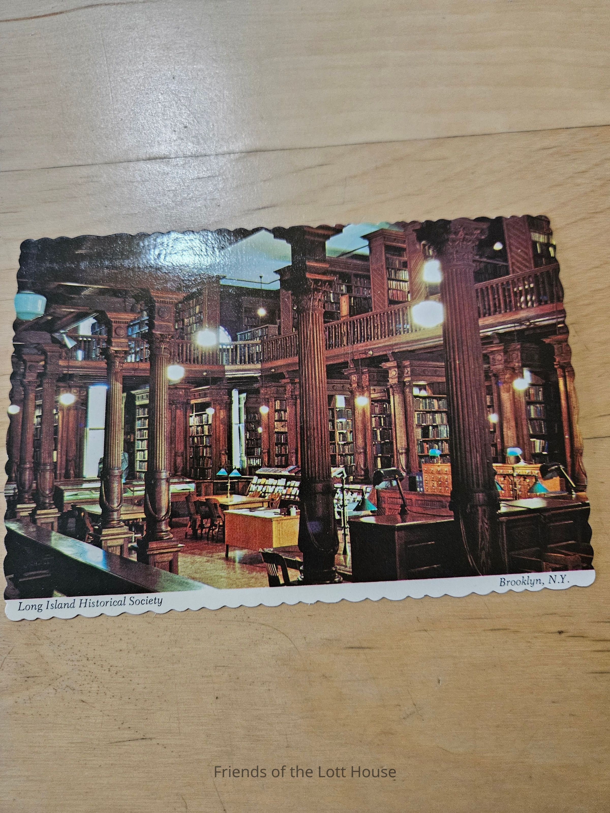 Postcard from the Long Island Historical Society depicting a libraryCollection
