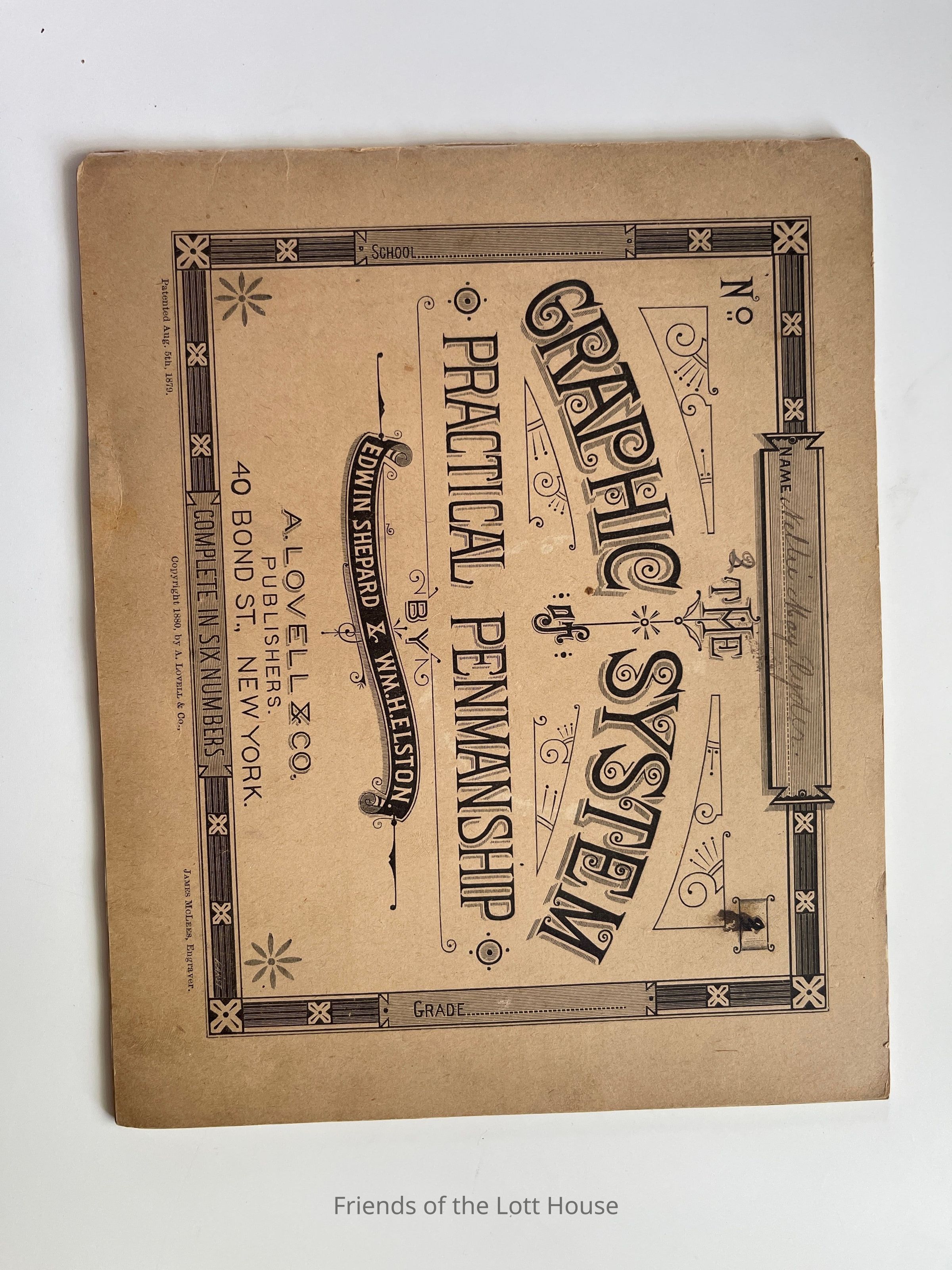 Notebook with Nellie Ryder's name on cover and logo indicating its use for penmanship. Has practice writing on insideCollection