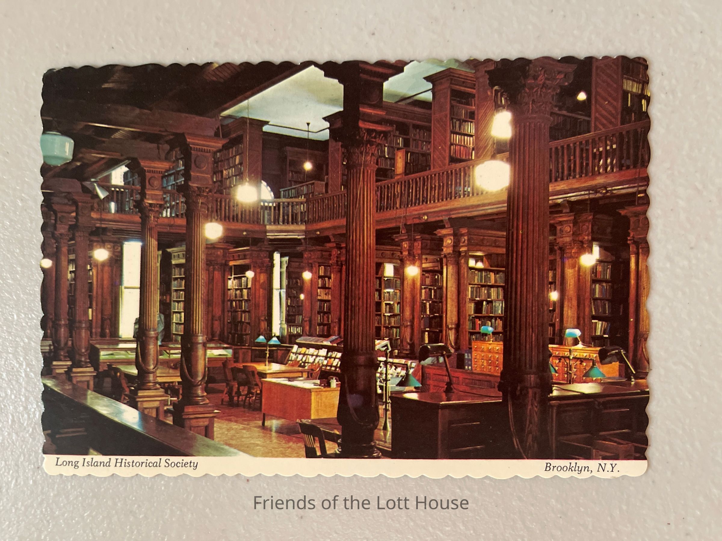 Postcard from the Long Island Historical Society with view of the libraryCataloged By