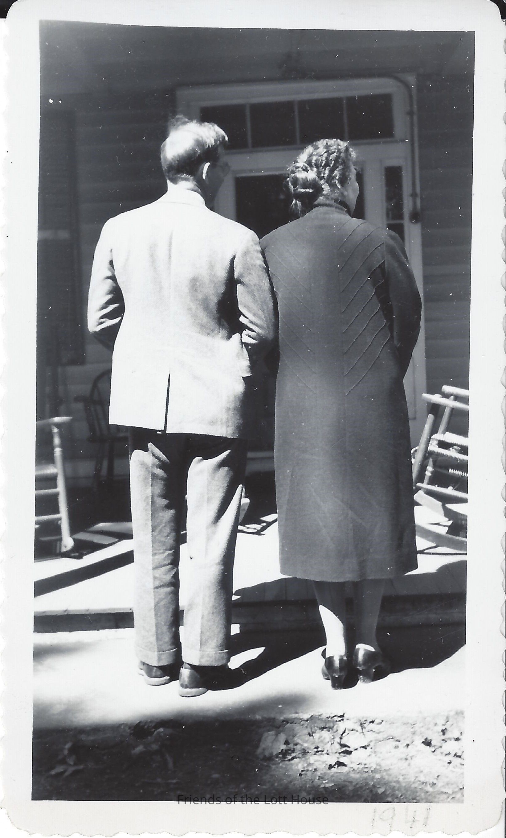 Photo of Nellie May Bennett and Curtis outside, facing away from the camera.Photograph Details