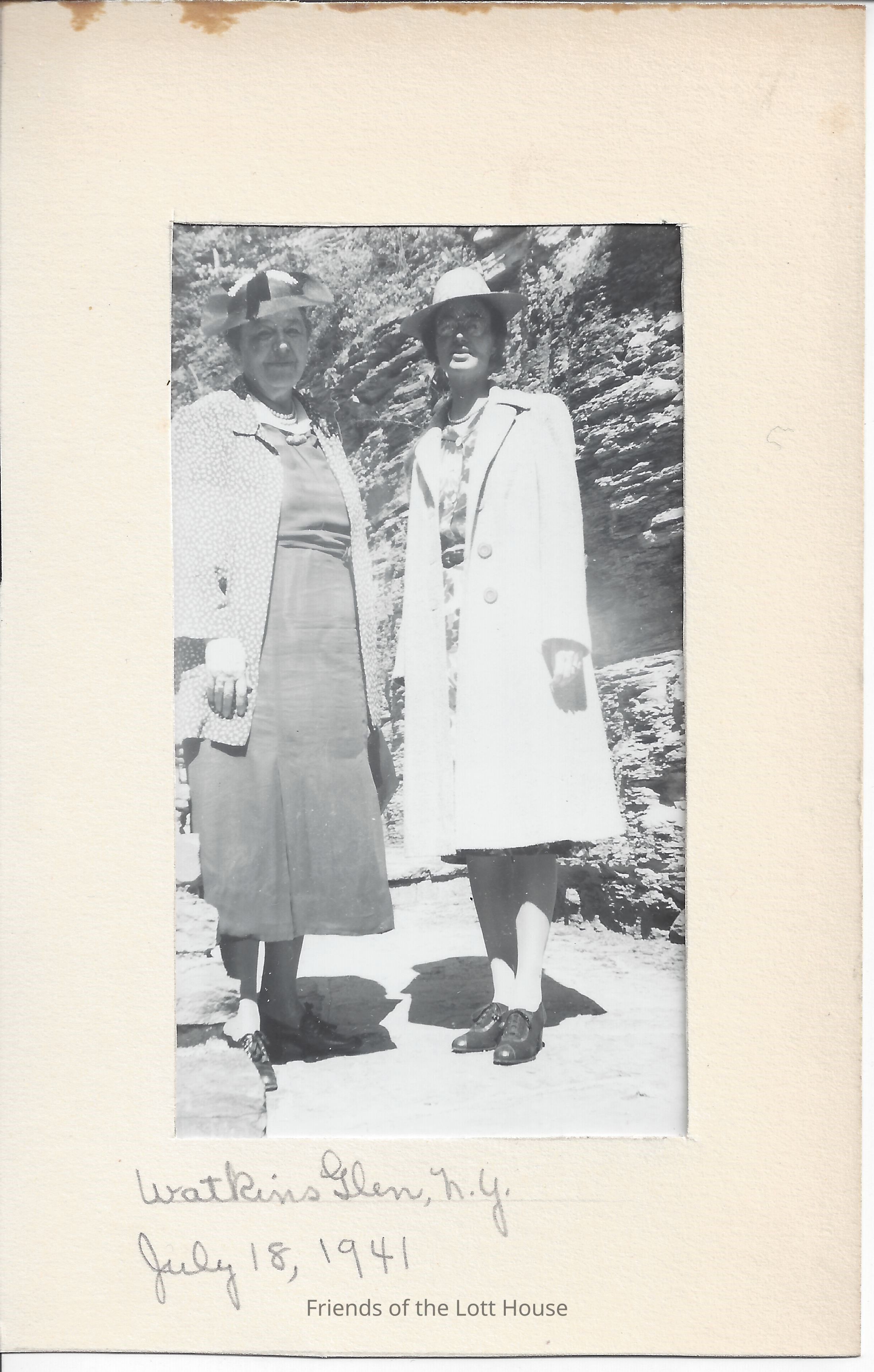 Photo of Nellie May Bennett and woman standing outside. Photo attached to a photograph mat.Photograph Details
