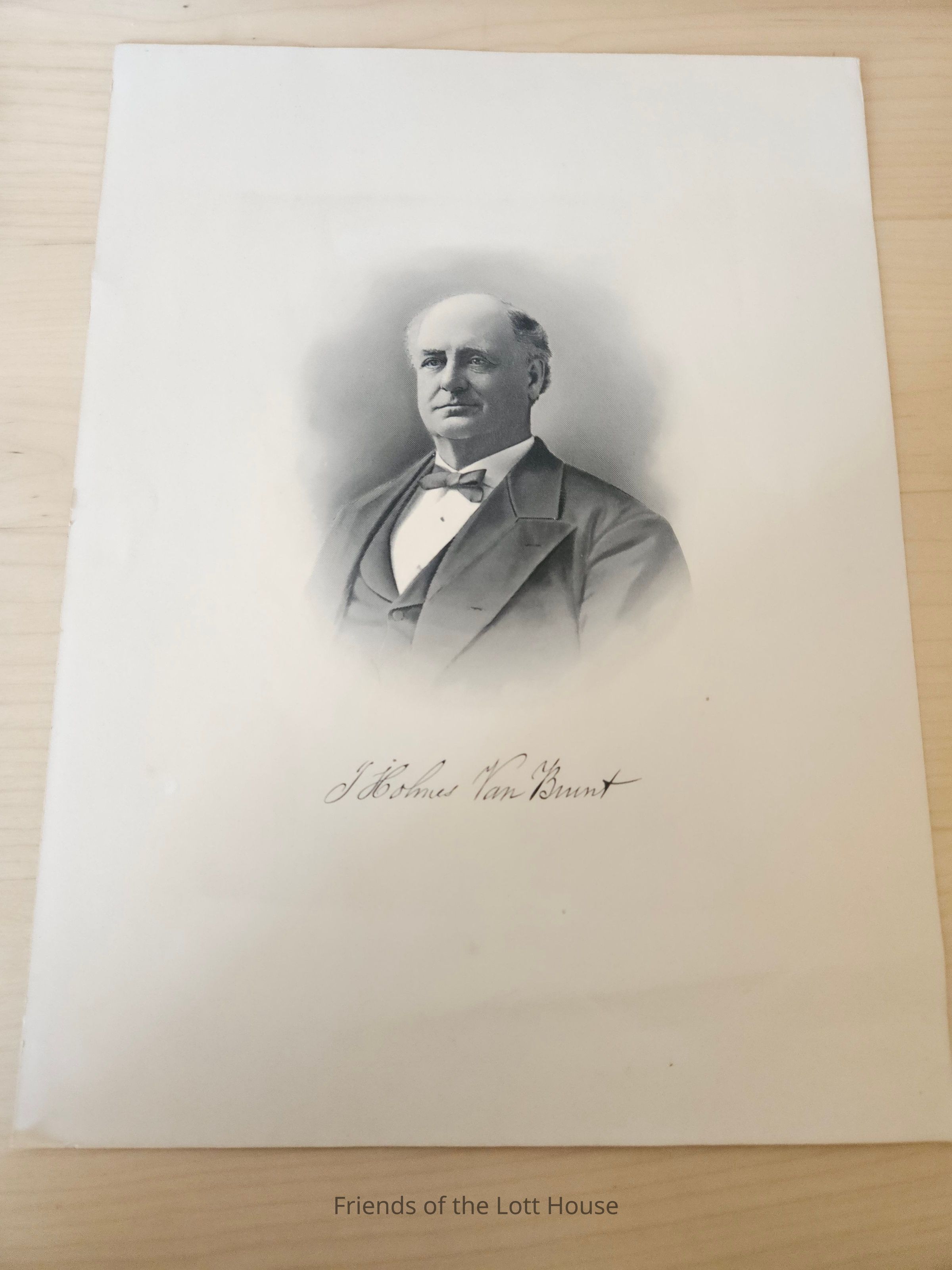 Photographic headshot of a man in a suit with name "J Holmes Van Brunt" underneath him.Collection