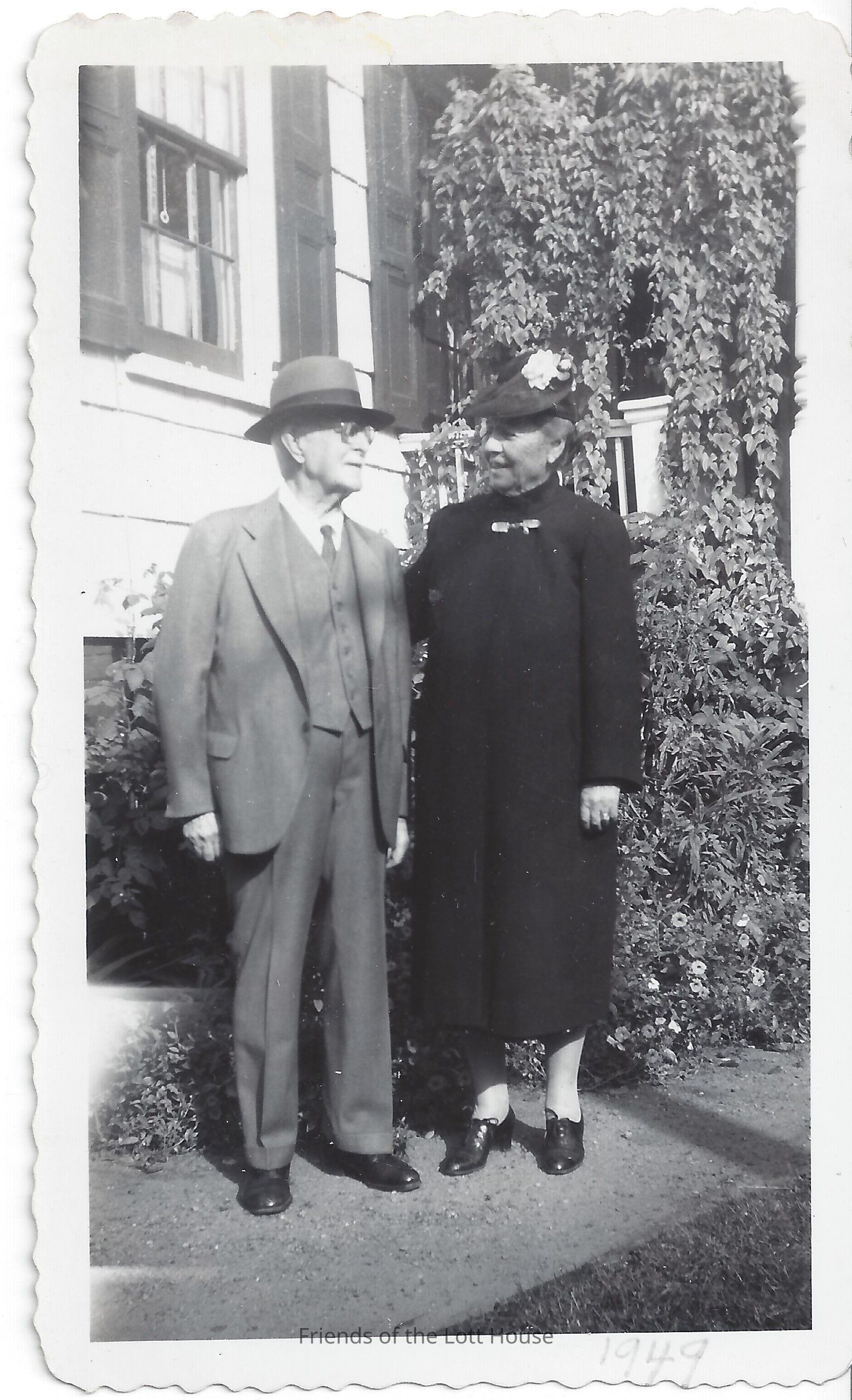Couple standing outside of house.Photograph Details