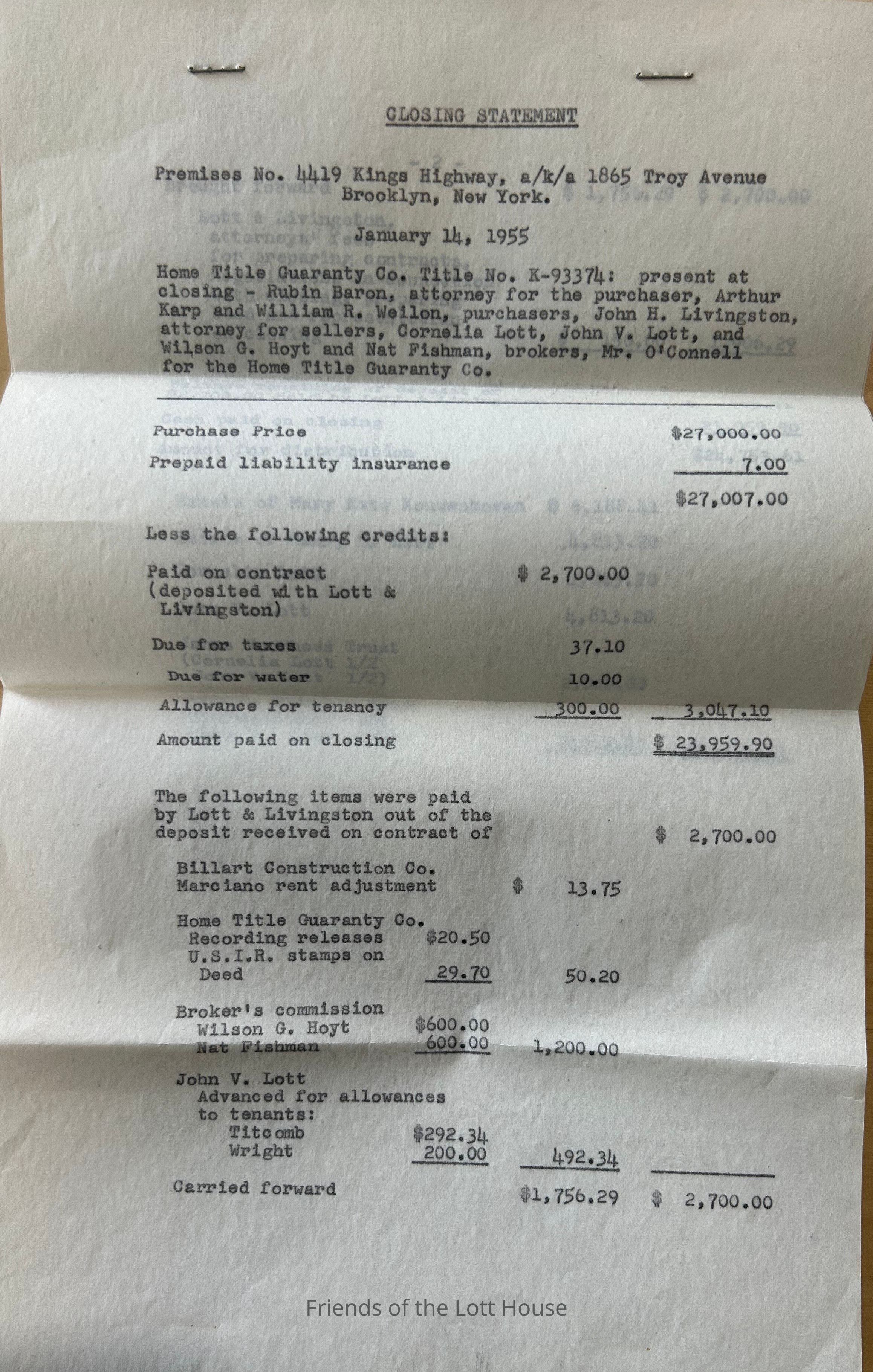 Closing Statement, January 14, 1955 4419 Kings HighwayCollection