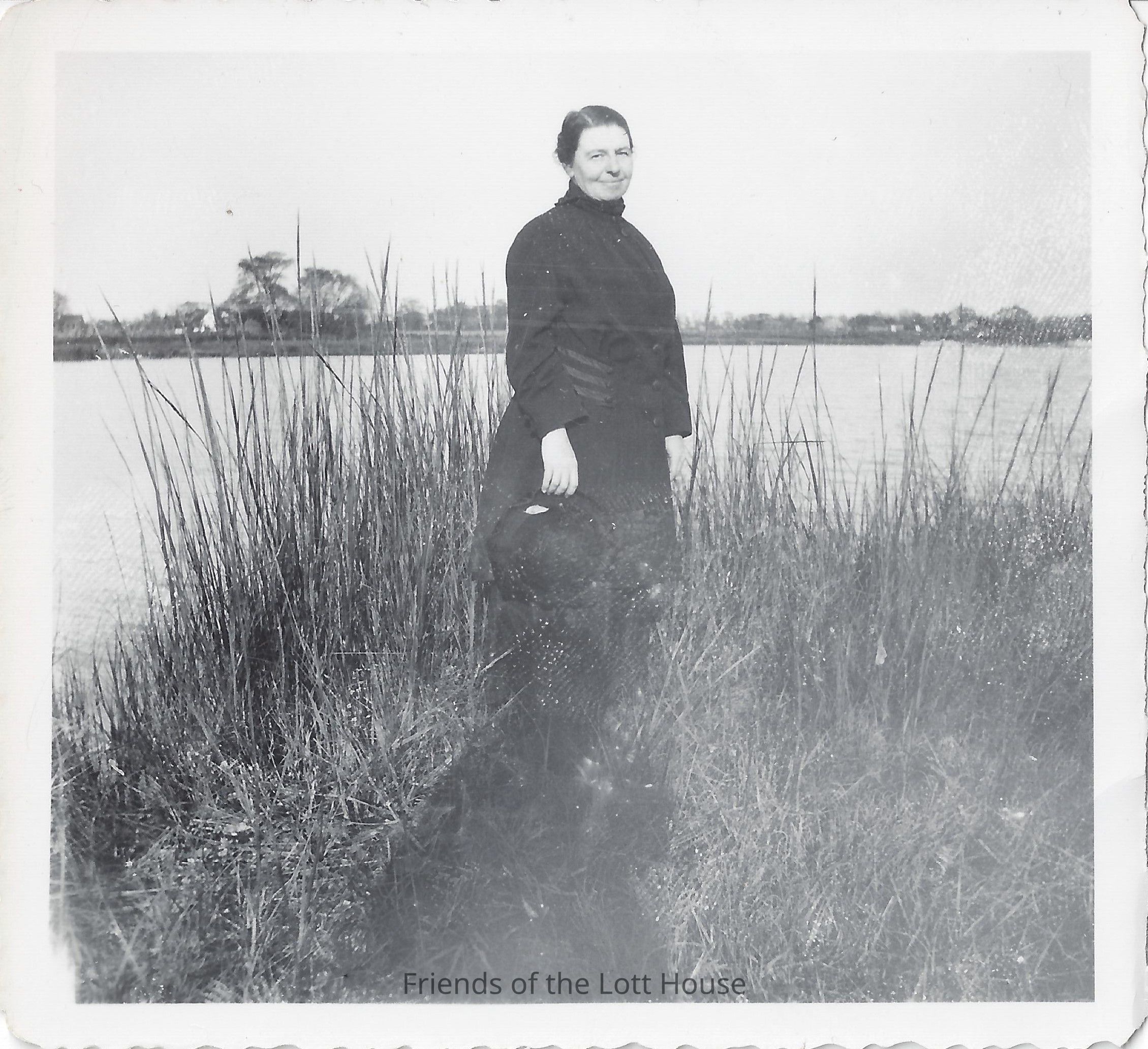 Woman posing outdoors in front of pond.Photograph Details