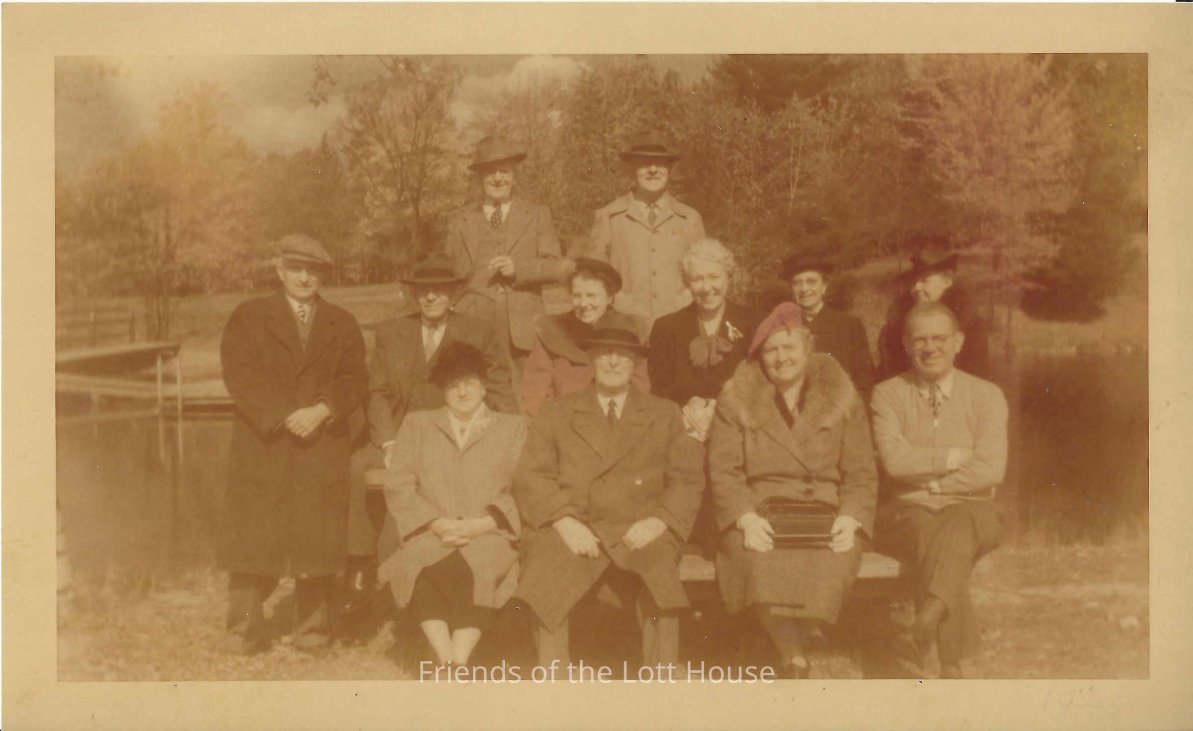 Mr. Barnhart - Mr. Eggert, Albert -, Mr. and Mrs. Drick, Mrs. Kneppola - Mrs. Barnhart - Mrs. Bennett, Mrs. Eggert - Mr. Bennett - Horence - Mr. Kneppola. At Hickory Run State Park near White Haven, Penn. taken by Marie Eggert. Columbus Day 1948 (Linnie Lee guests)