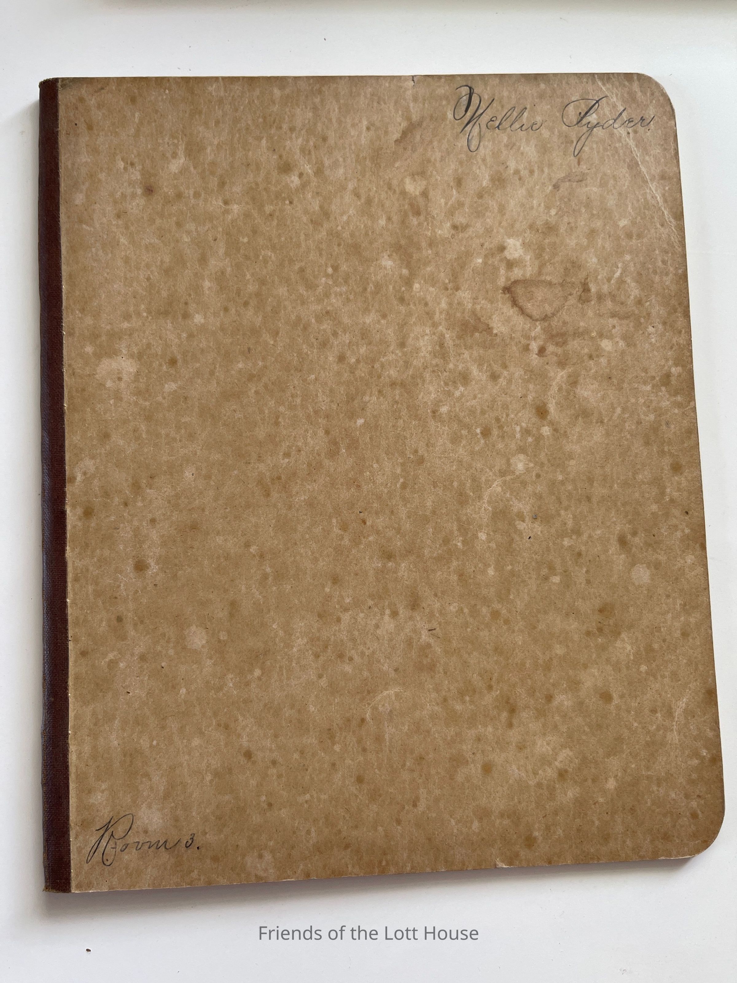 Tan notebook with "Nellie Ryder" written on cover. Inside indicates it was used for Psychology classesCollection