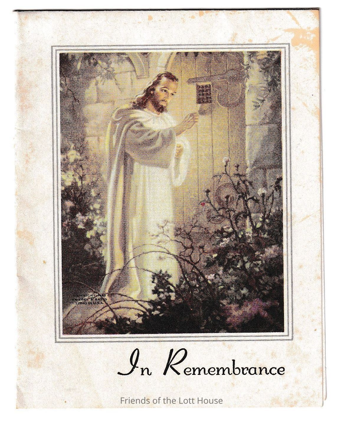 Memorial card for the services of Catherine Klug Lott, Thursday April 14, 1966Collection