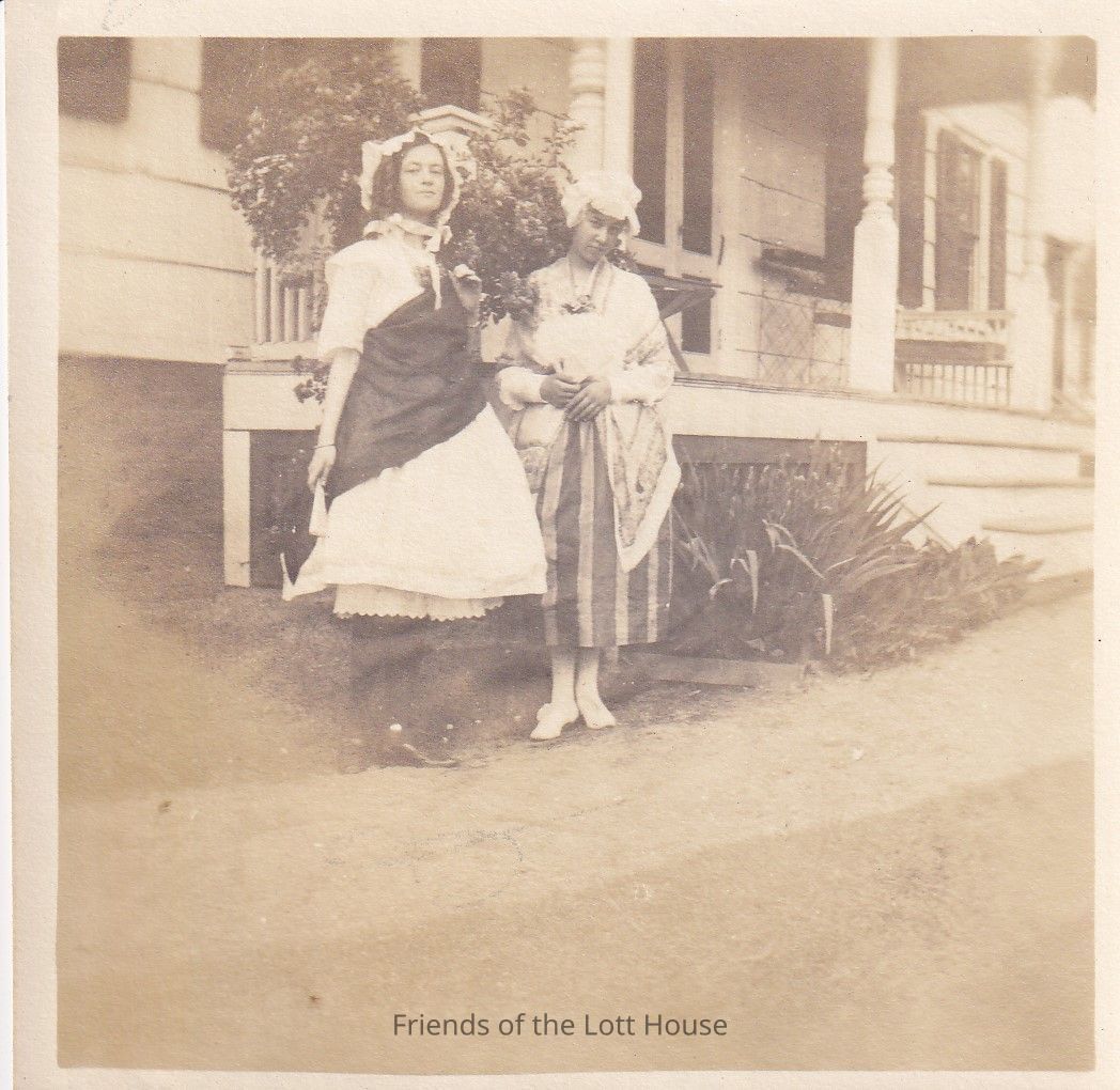 Photo of two women dressed up and standing in front of a houseCollection