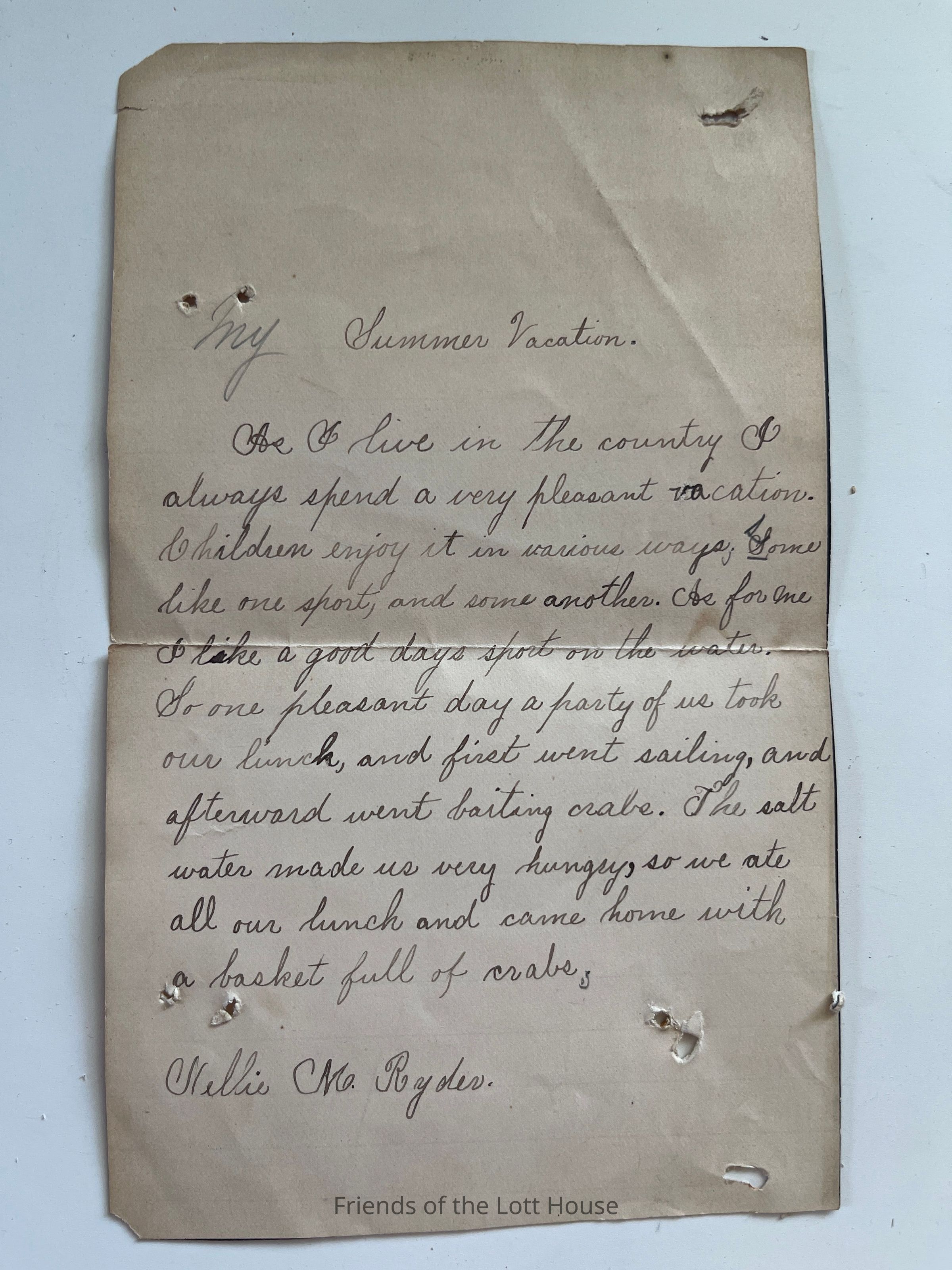 Letter written by Nellie M. Ryder describing a day during her summer vacationCollection
