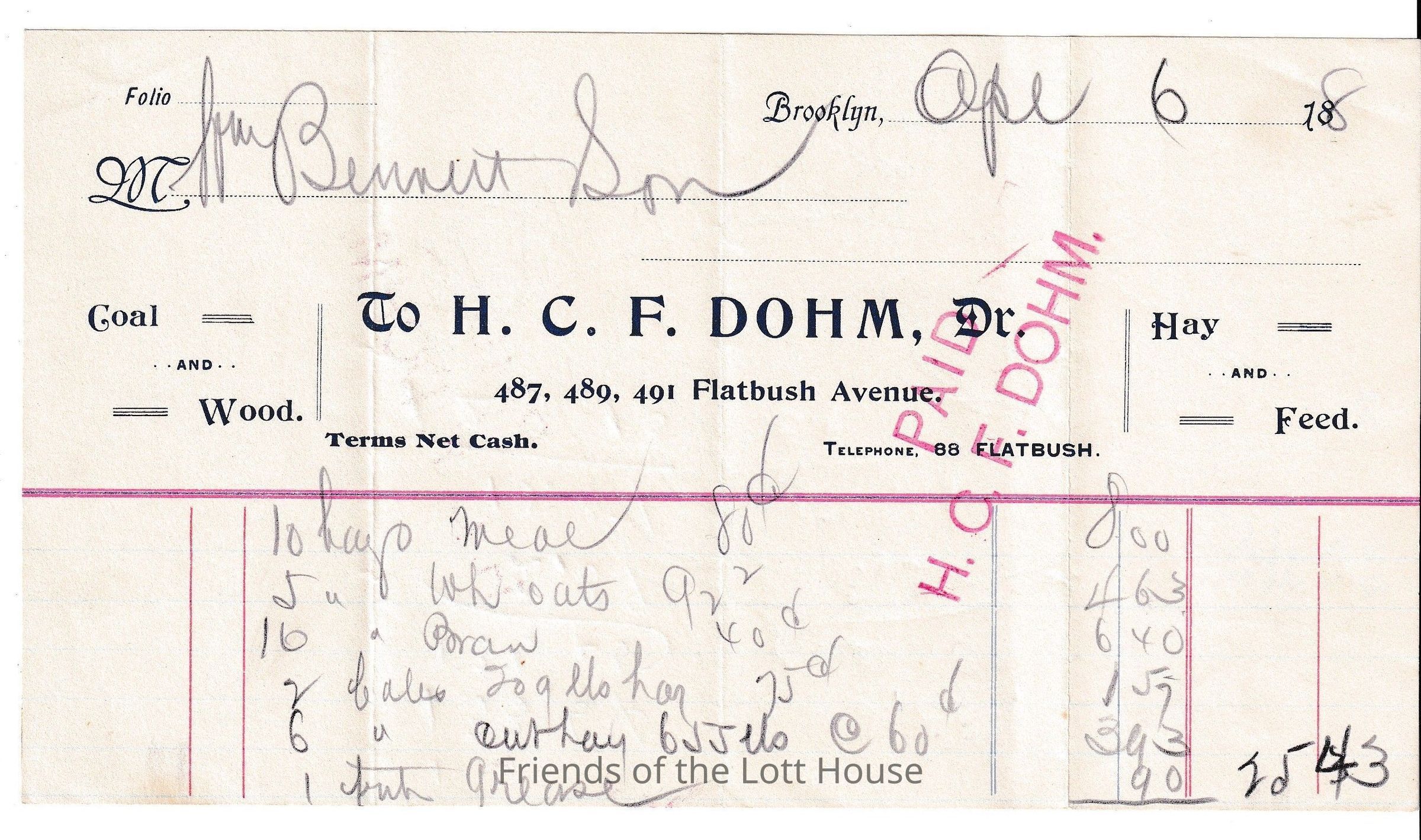 Receipt from a member of the Bennett family issued on April 6 1898Collection