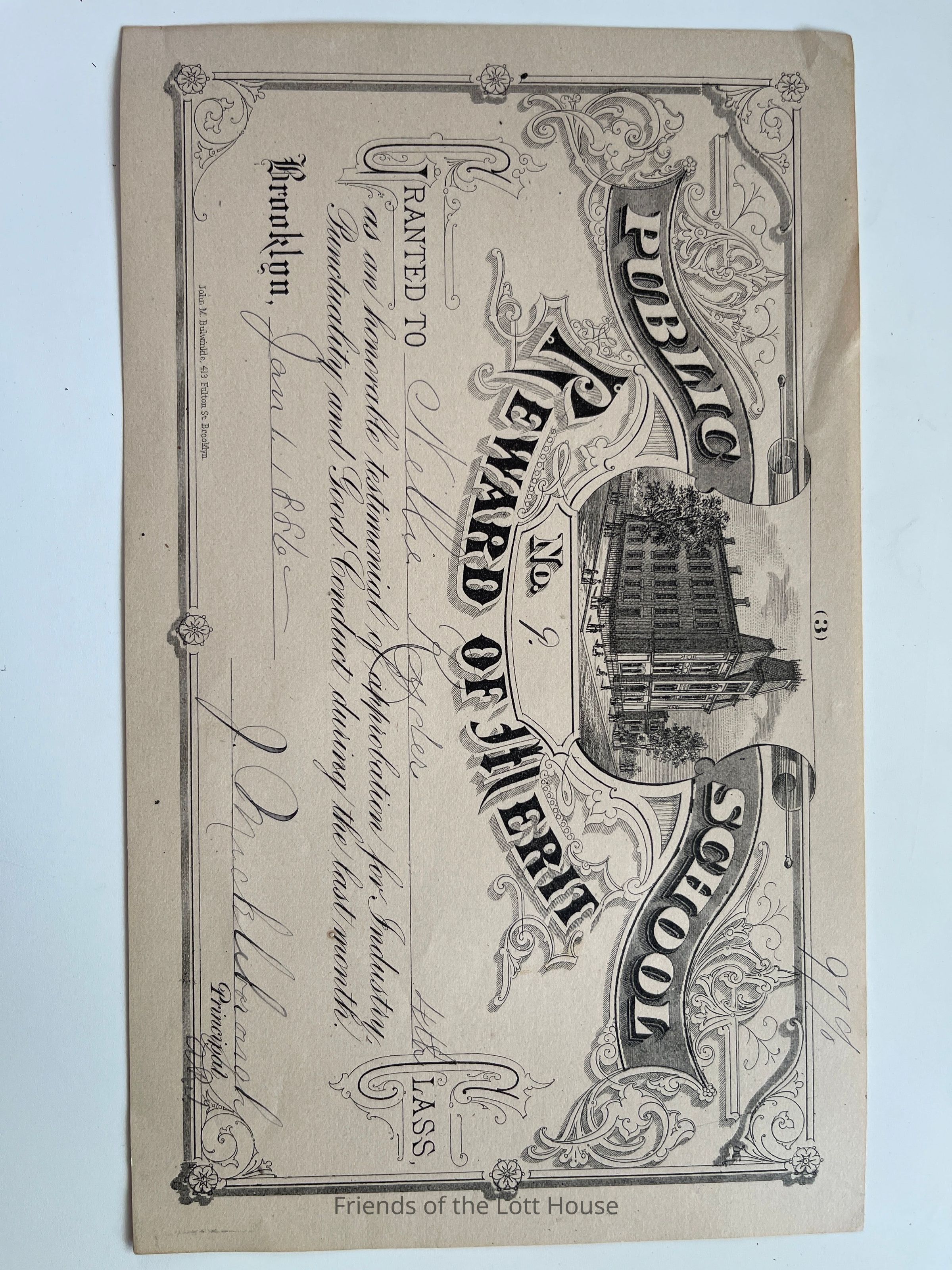Public School No. 9 Award of Merit granted to Nellie Ryder, January 1, 1886Collection
