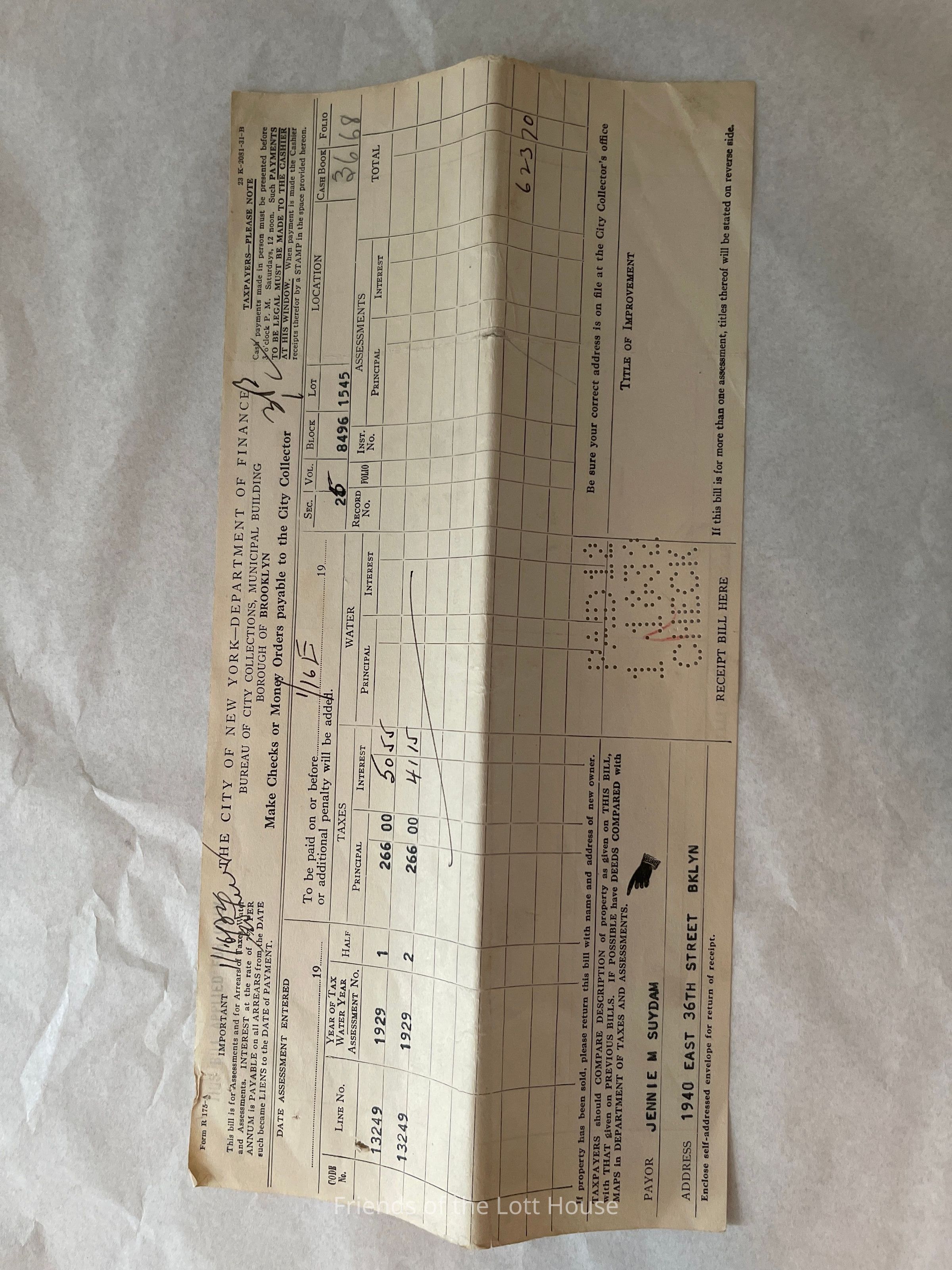 Tax Receipt 1929 (Block 8496 Lot 1545)