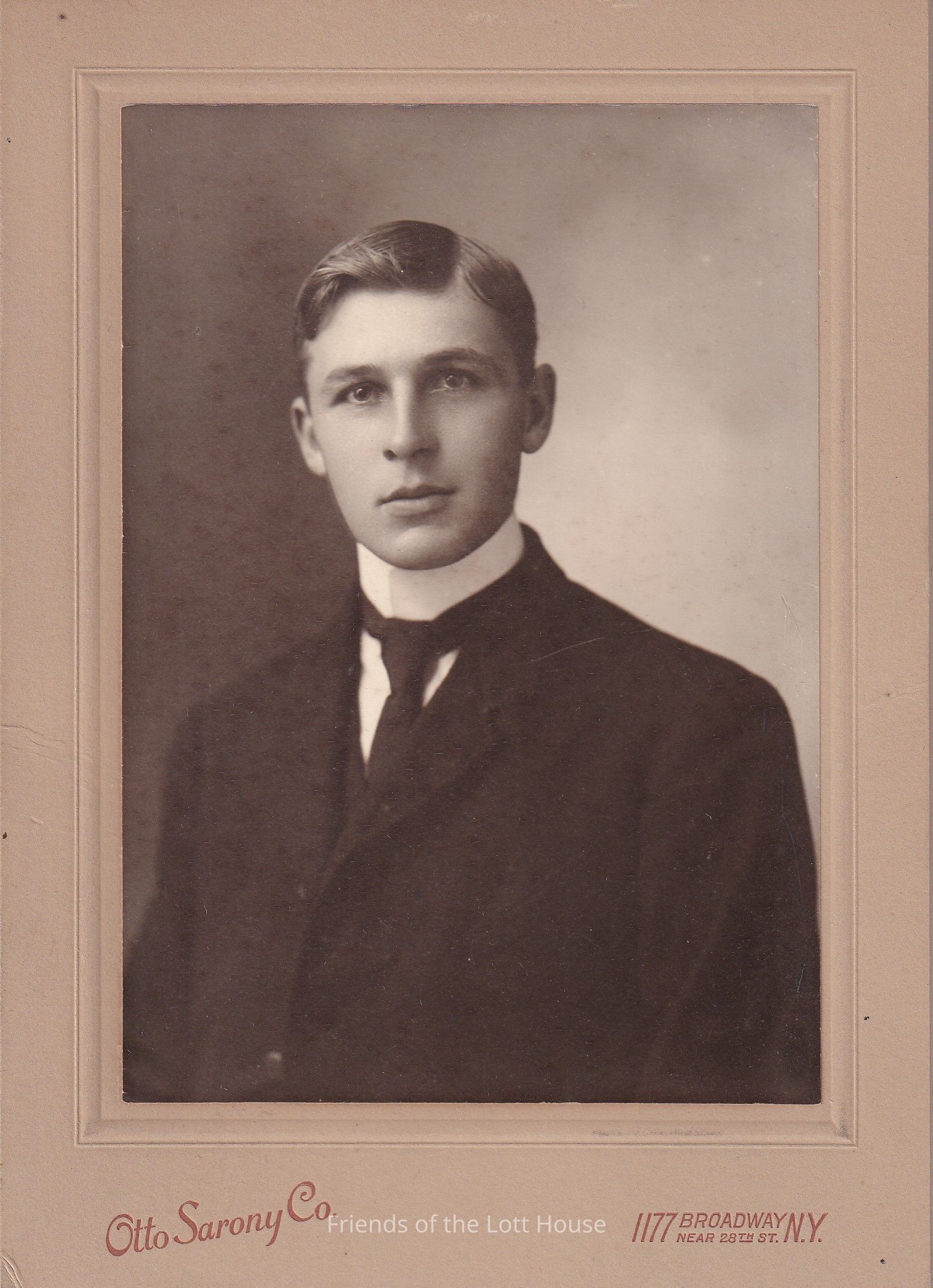 Photograph of young man in formal wear. Has "Ott Sarony Co." logo on bottom. Has writing on backCollection