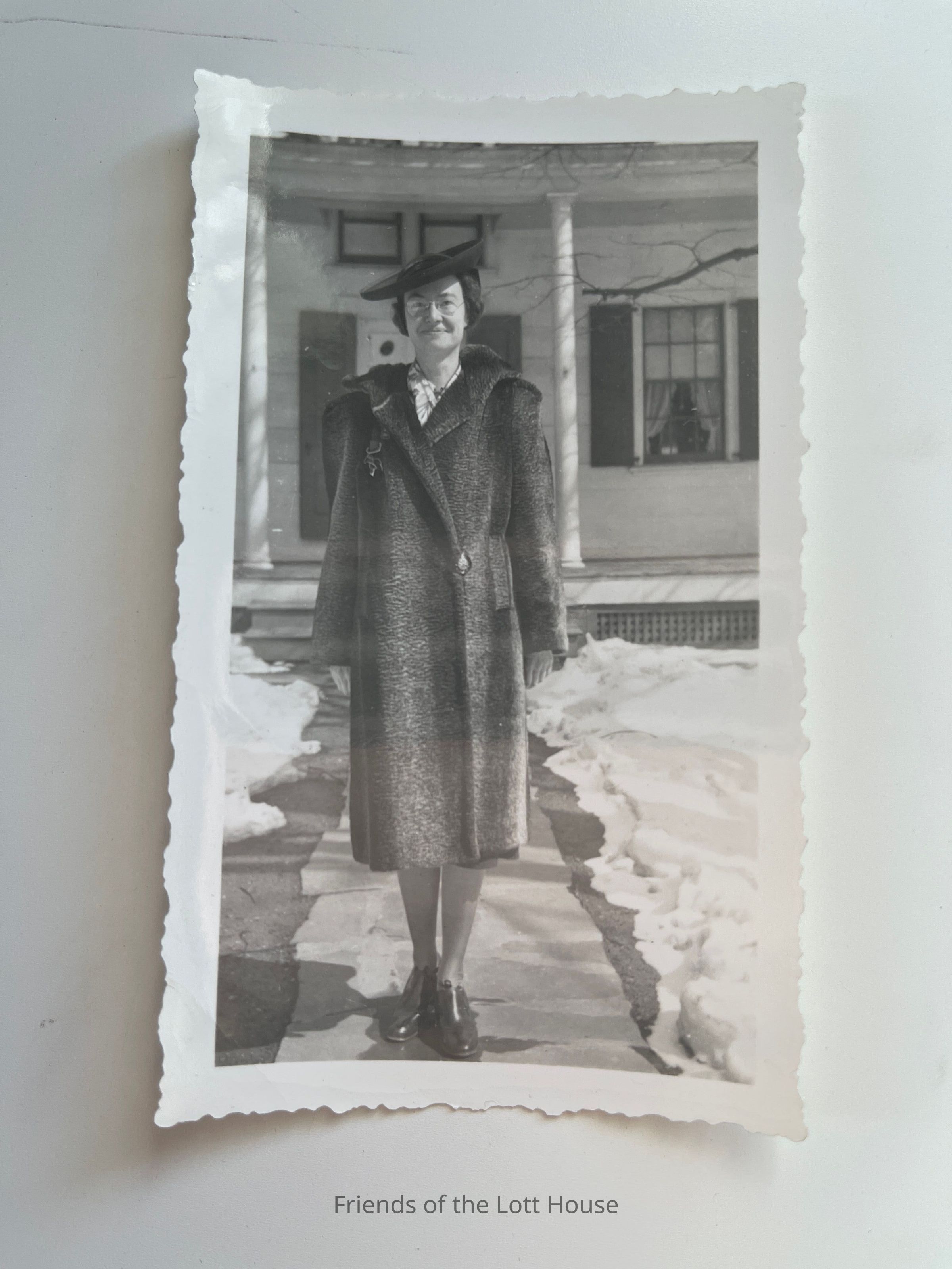 Photograph of Gertrude Ryder Bennett outside of her home, March 3, 1941Collection