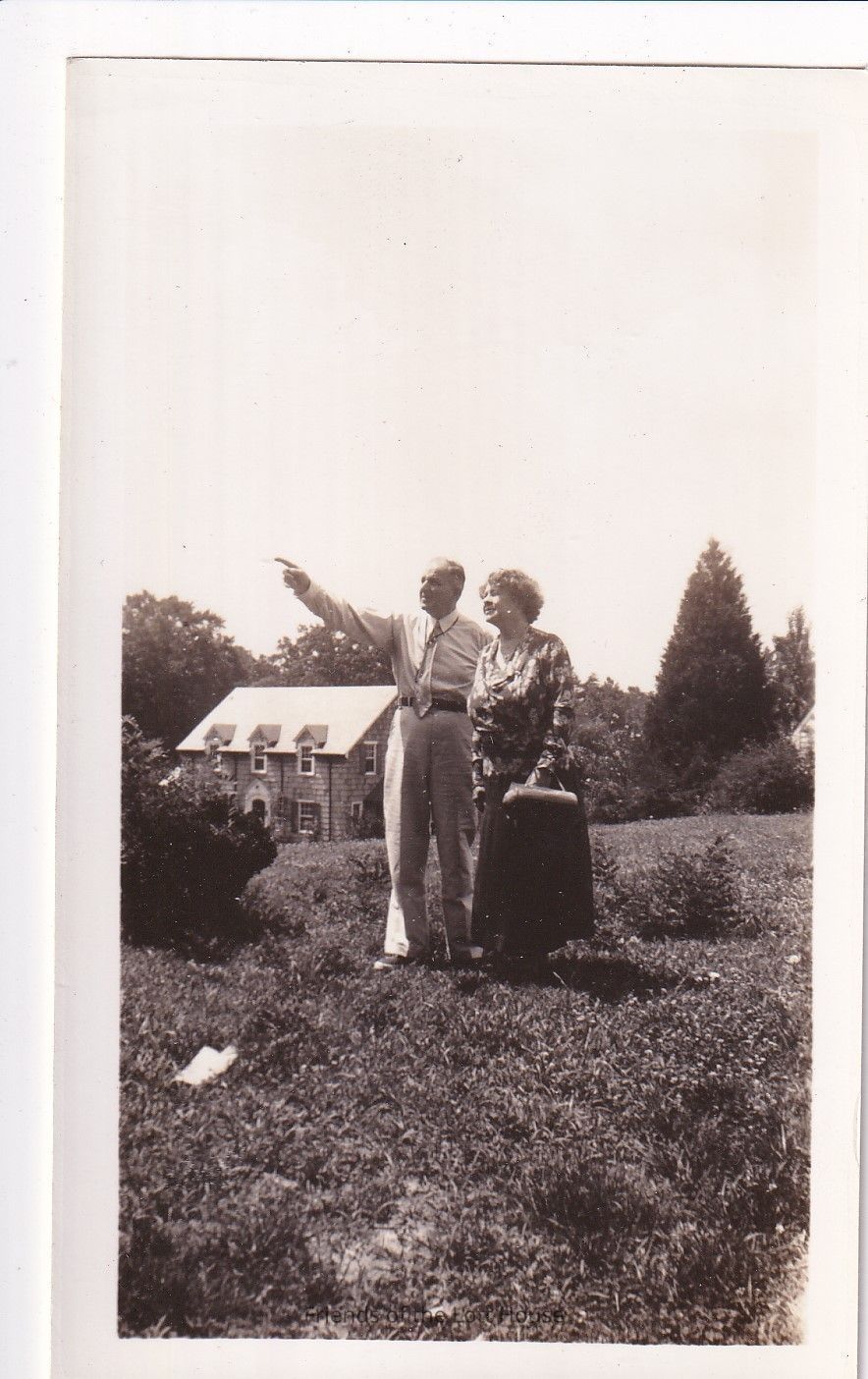Photo of a man and woman standing in a field with house in backgroundCollection