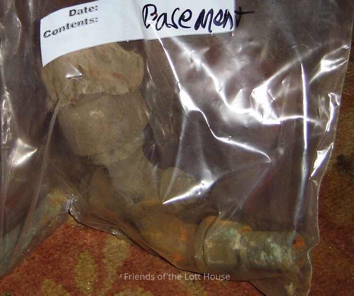 Iron spigot found in basement and placed in plastic bag marked basementCollection