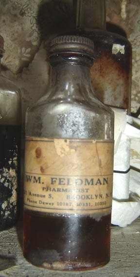 Clear glass apothecary bottle with metal screw cap having paper label with inscription: Wm. Feldman, Pharmacist, 3521 Avenue S. Brooklyn N.Y.Collection