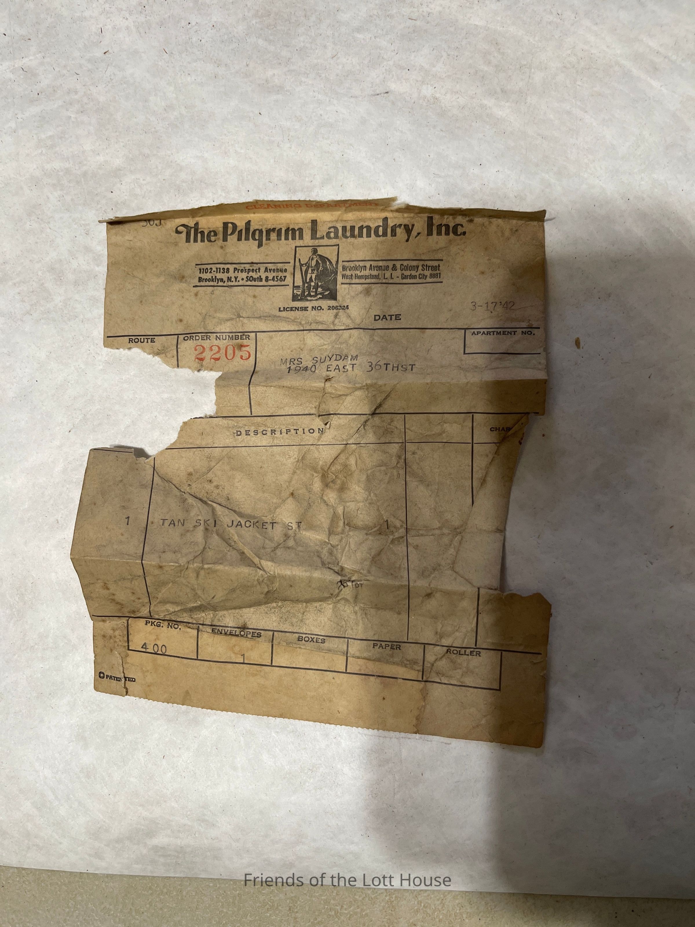 Paper receipt from Pilgram LaundryCollection