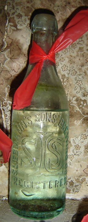 Light green glass bottle of cylindrical shape having long neck and sloped shoulder having imprint: SIS / S. Liebmann's Sons BreweryCollection