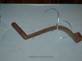 Cast iron having square fitting, curved arm and dowel-shaped grasp.Collection