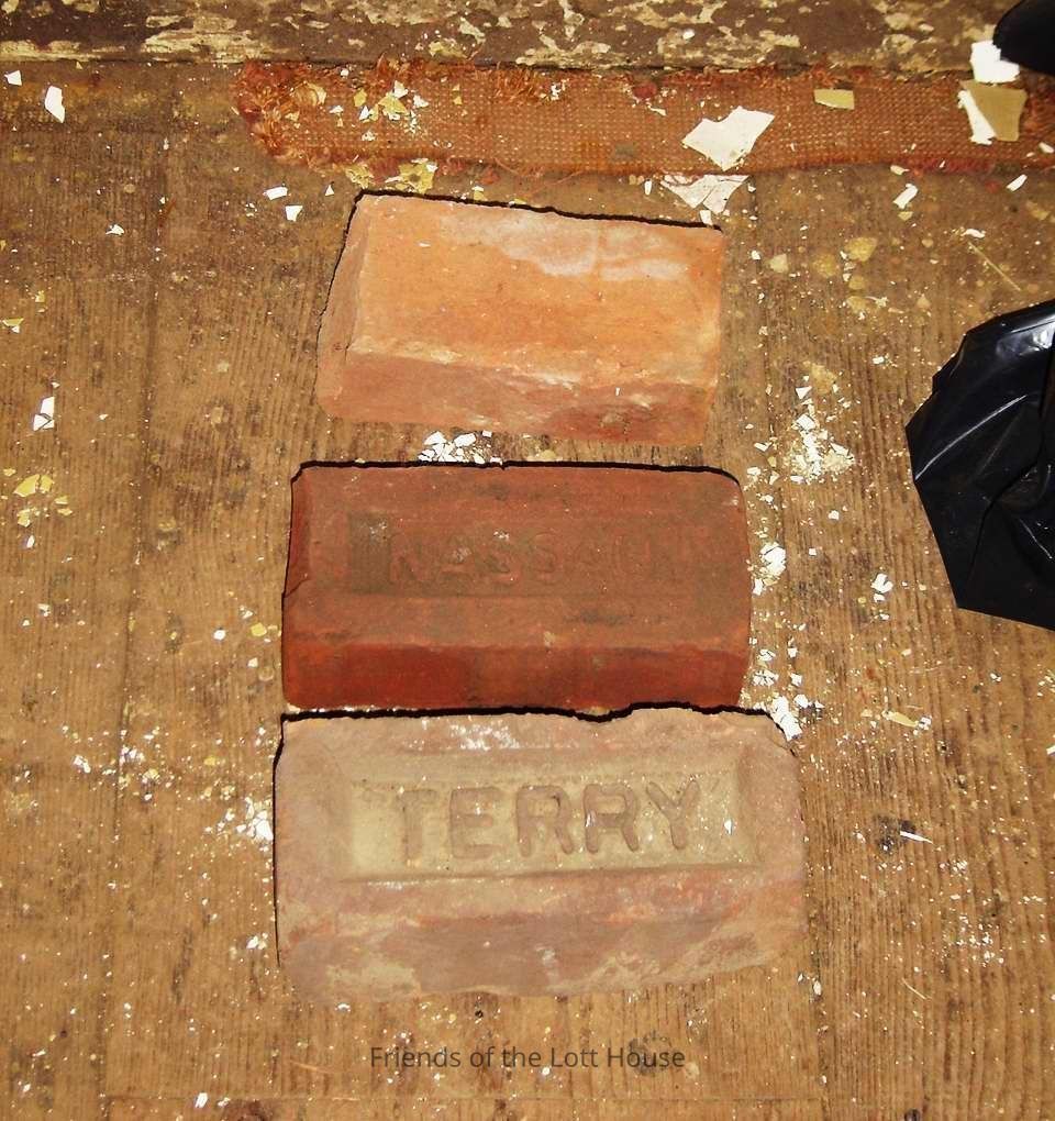 Red clay brick of rectangular shape and light red color having "Terry" in raised letters on surfaceCollection