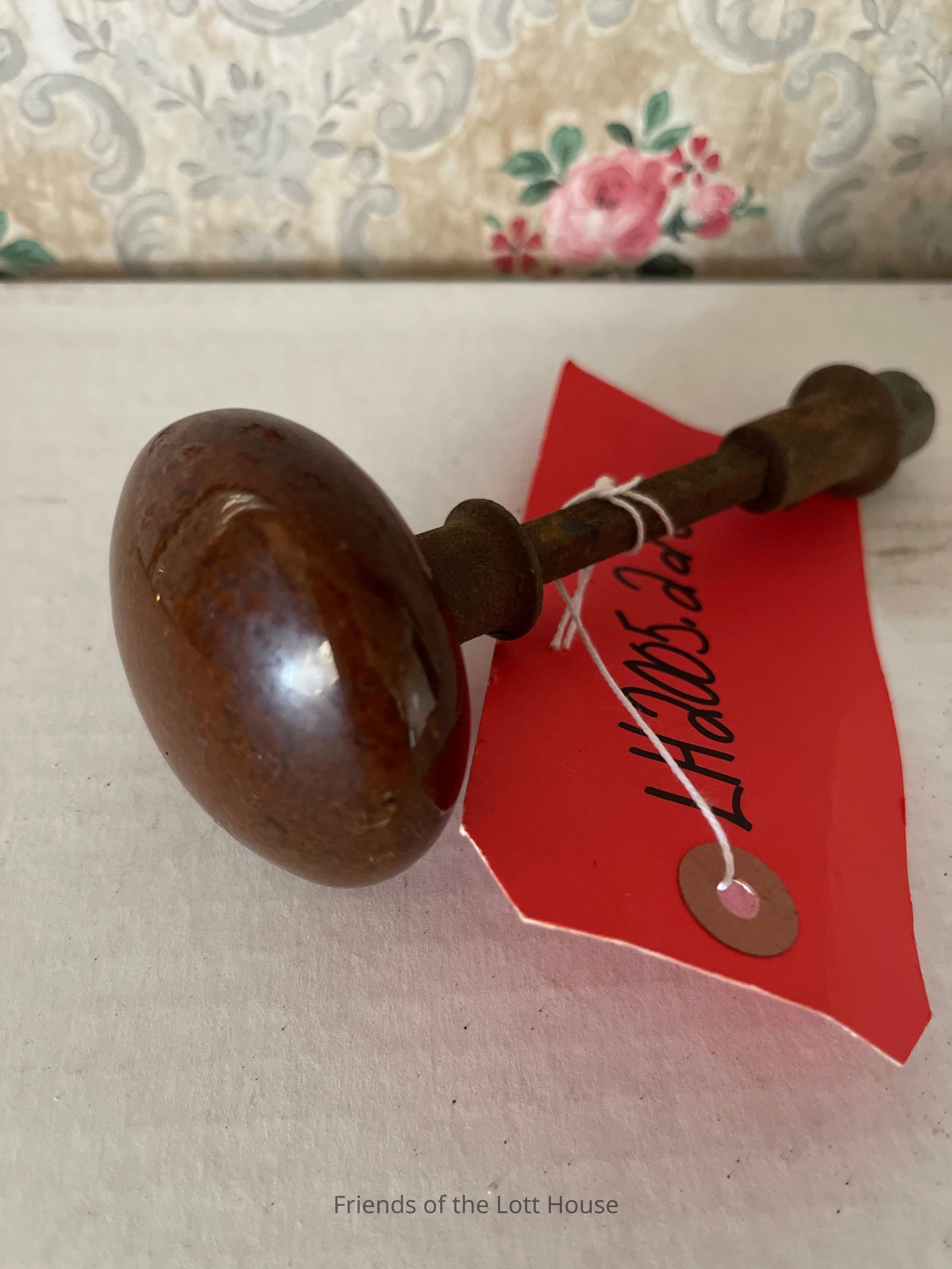 Brown ceramic doorknob having perpendicular rod and fittingCollection