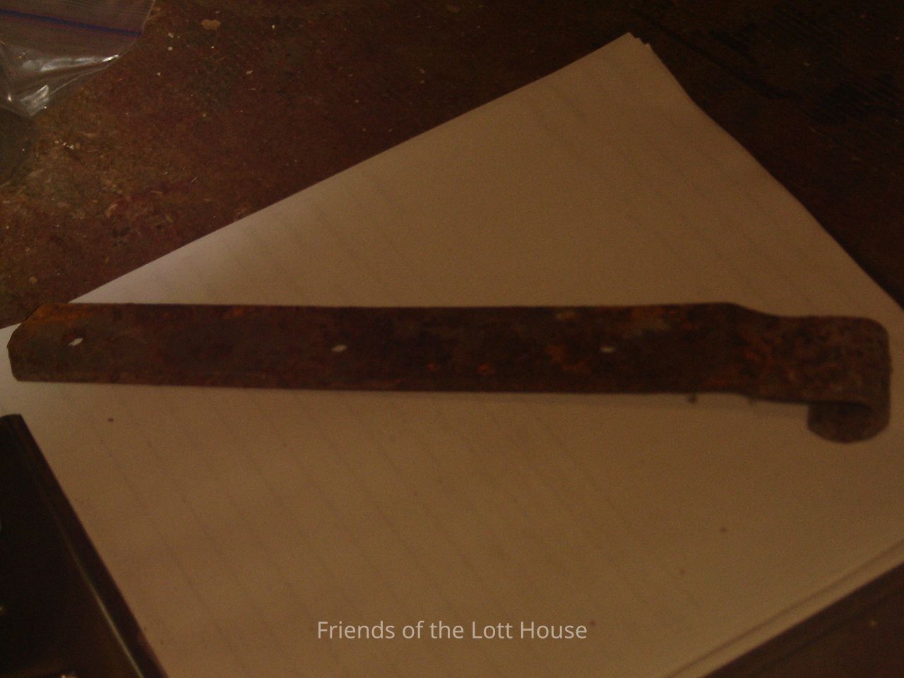 Iron strap hinge having opposing looped and squared ends with three screw holesCollection