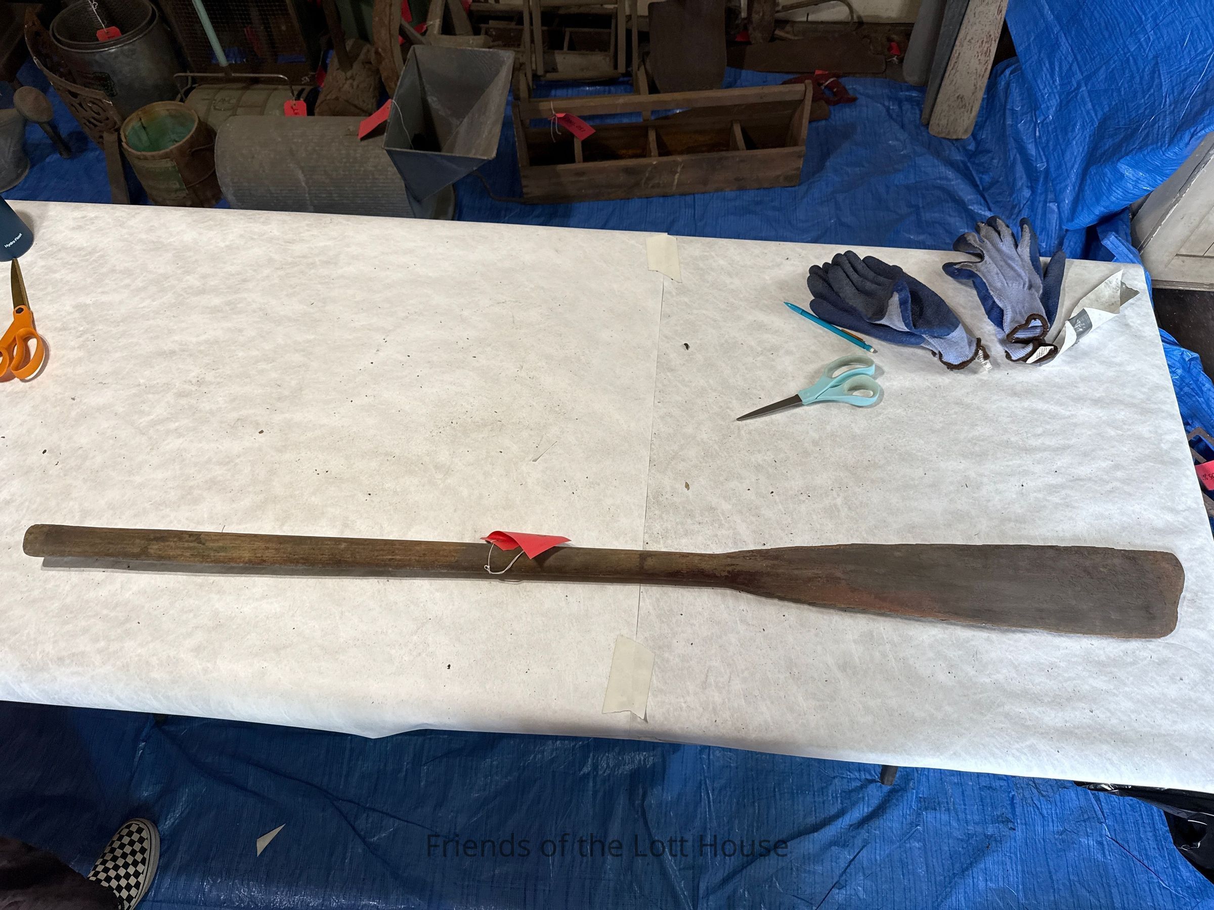 Wood oar having turned wood end with blunt end and tapered tipped paddleCollection