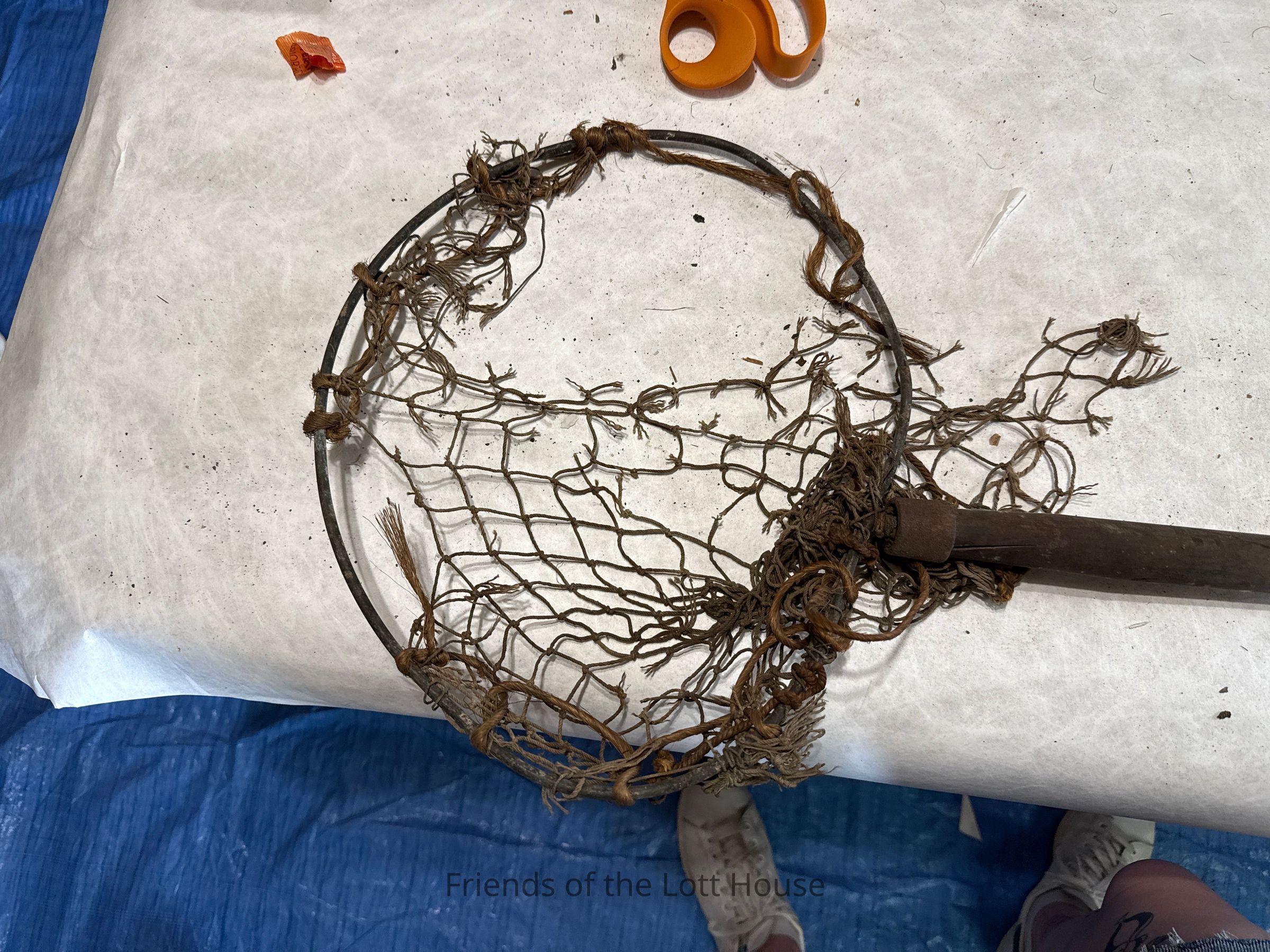Net having turned wood pole fitted with round iron frame holding cotton netCollection