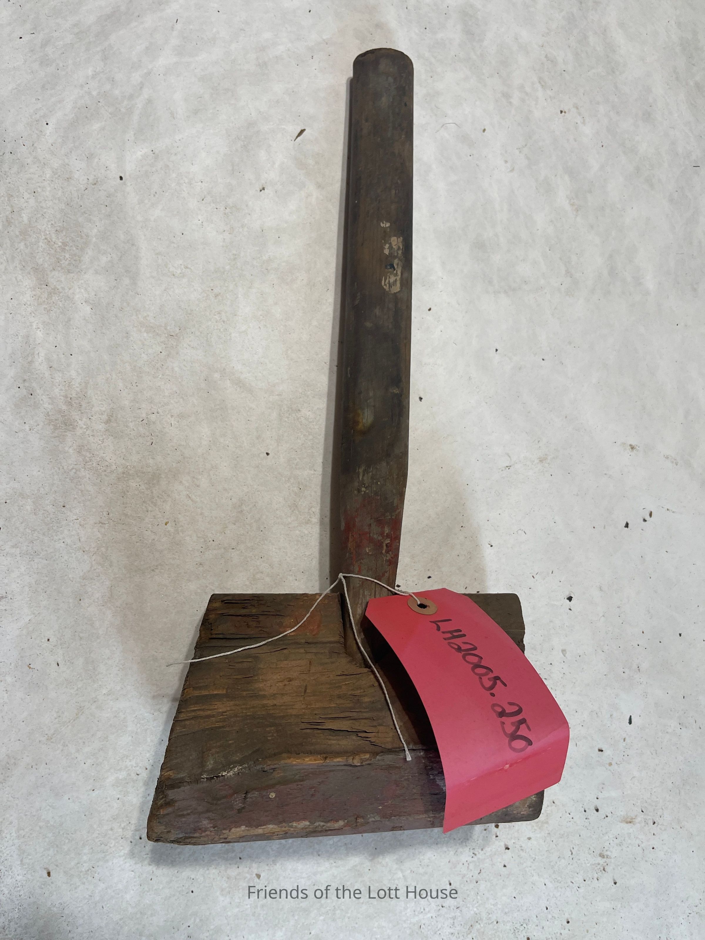 Wood maul set on short turned pole; the maul head is split in halfCollection