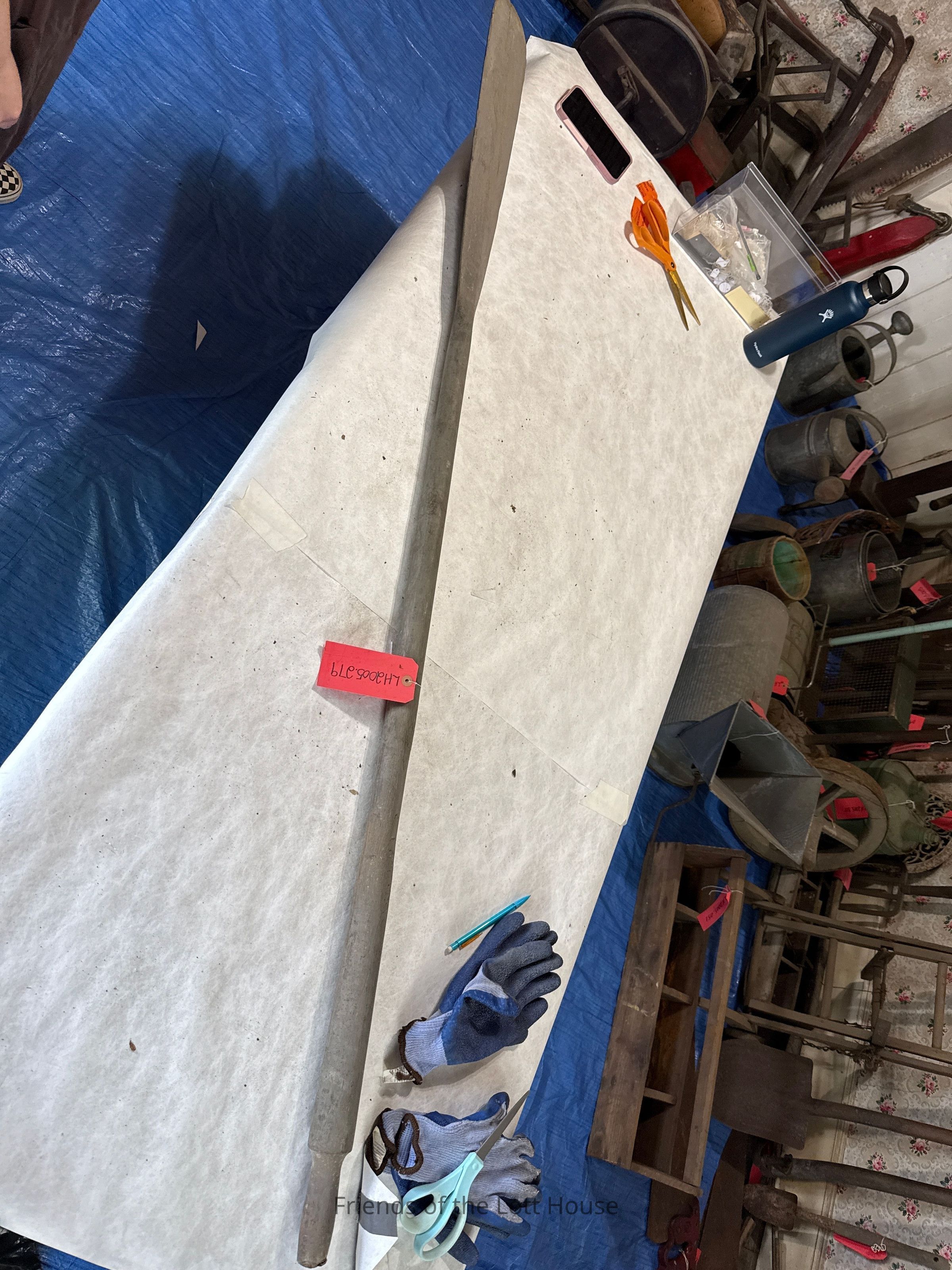 Wood oar having turned wood shaft with rolling pin end and round tipped paddleCollection