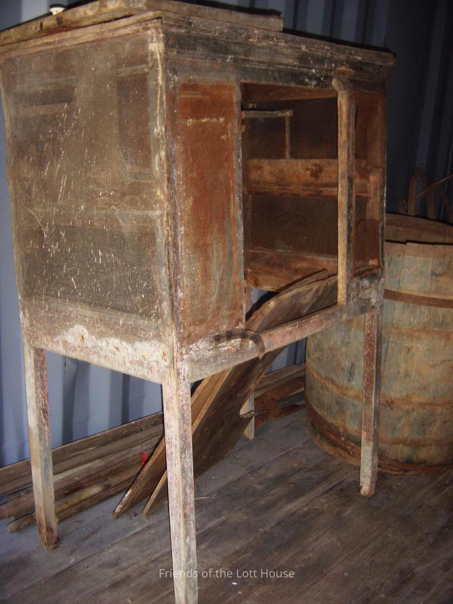 Wood pie safe having screened sides, door on front, one interior shelf on high, narrow legsCollection
