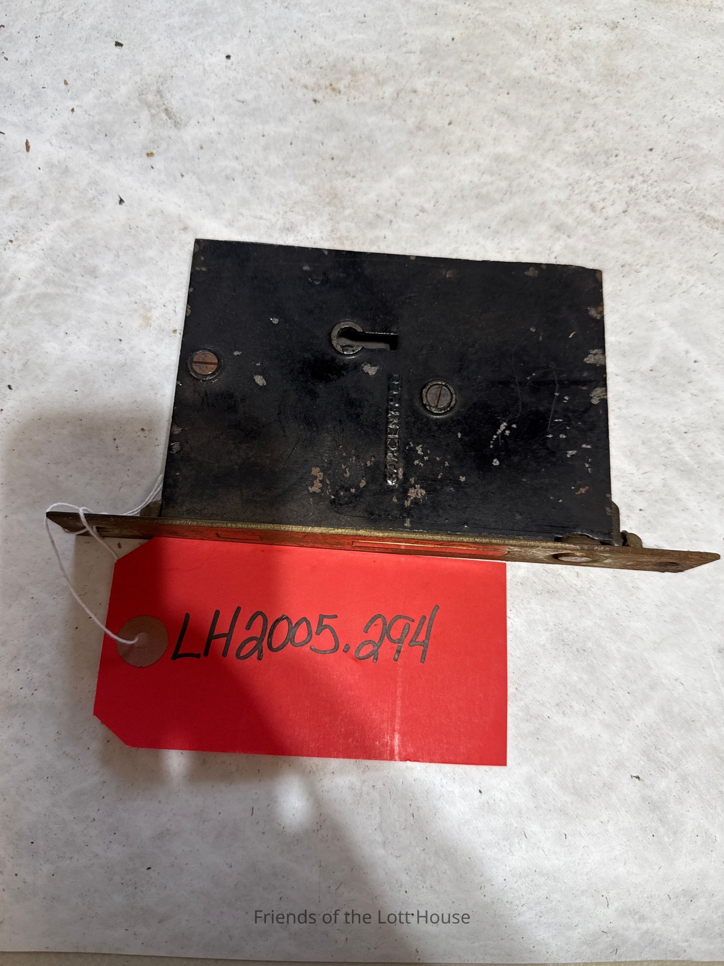 Lock mechanism, deadbolt, housed in metal box for use in door. Mortise lockCollection