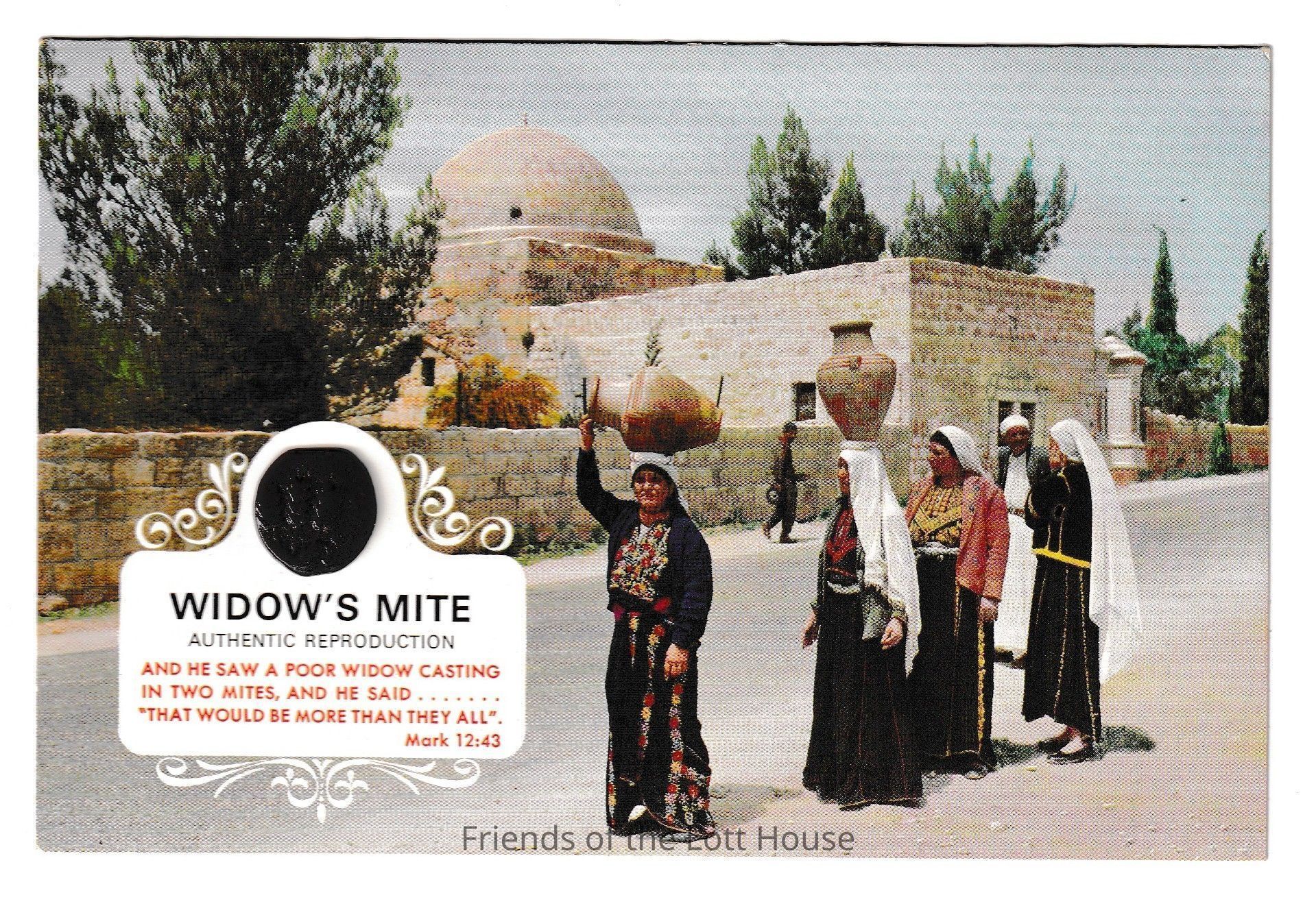 Card from Aunt Lem to Cornelia Lott, Widow's mite postcard