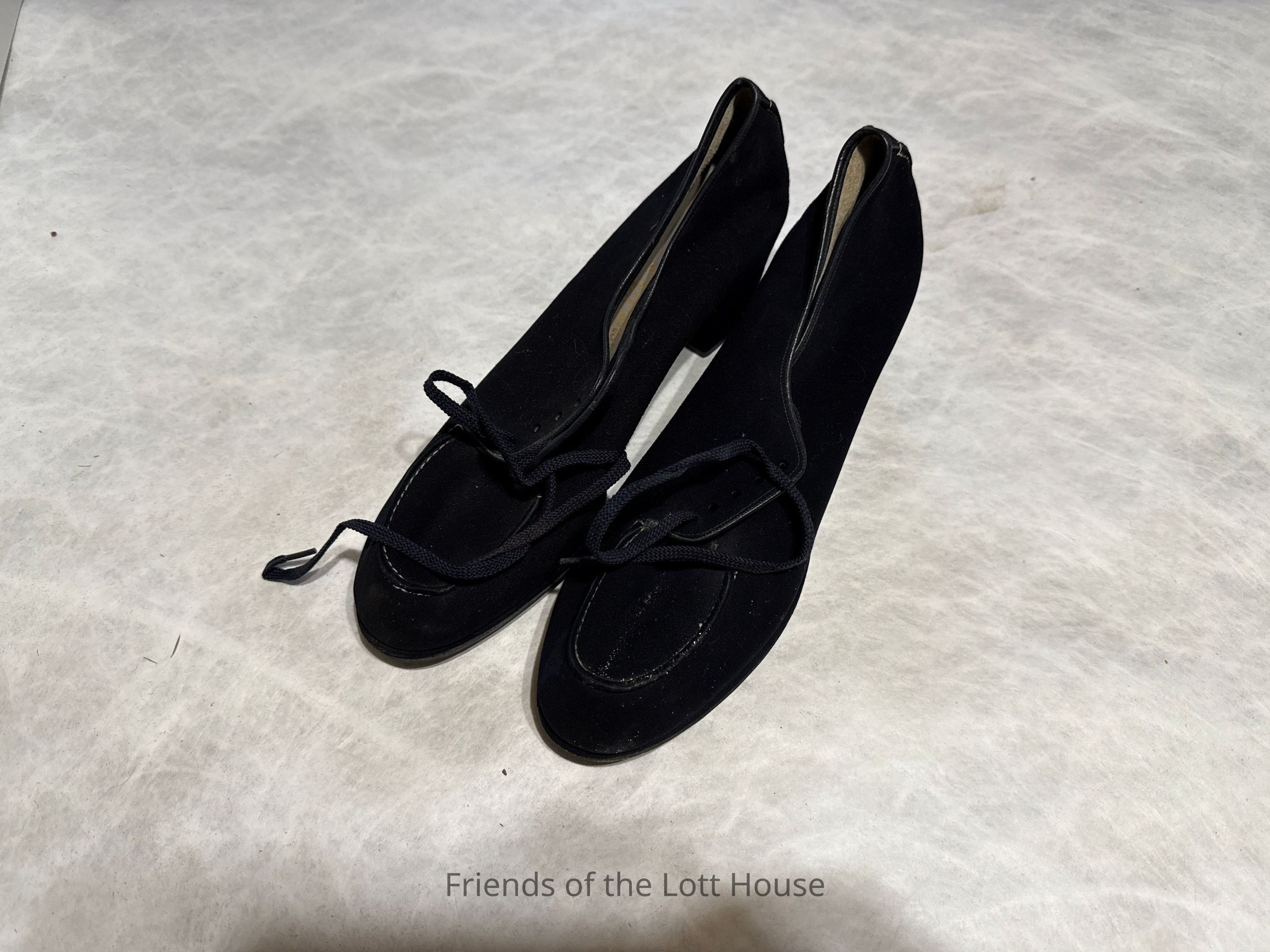Pair of womens navy suede shoes with lace up fronts and block heel. Brand: Saks Fifth Avenue, Fenton LastCollection