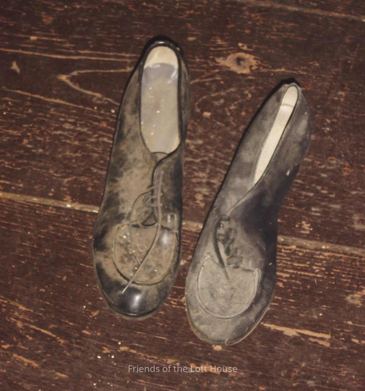 Pair of womens black suede shoes with lace up front and block heelCollection