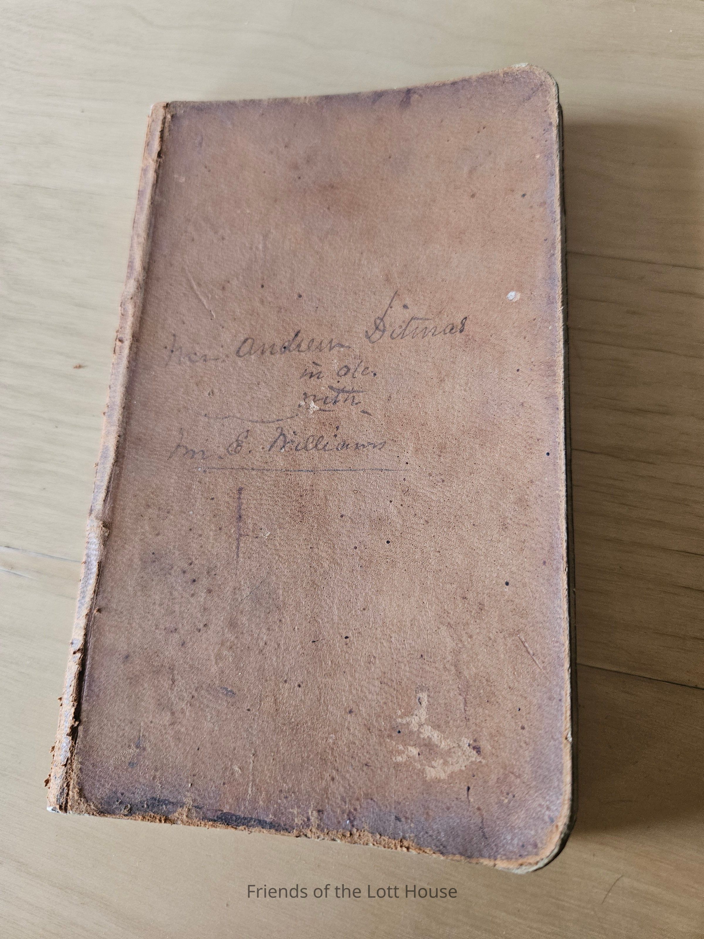 Small brown notebook with no title. Written on cover is "Mr. Andrew Ditmas" with a message.Collection