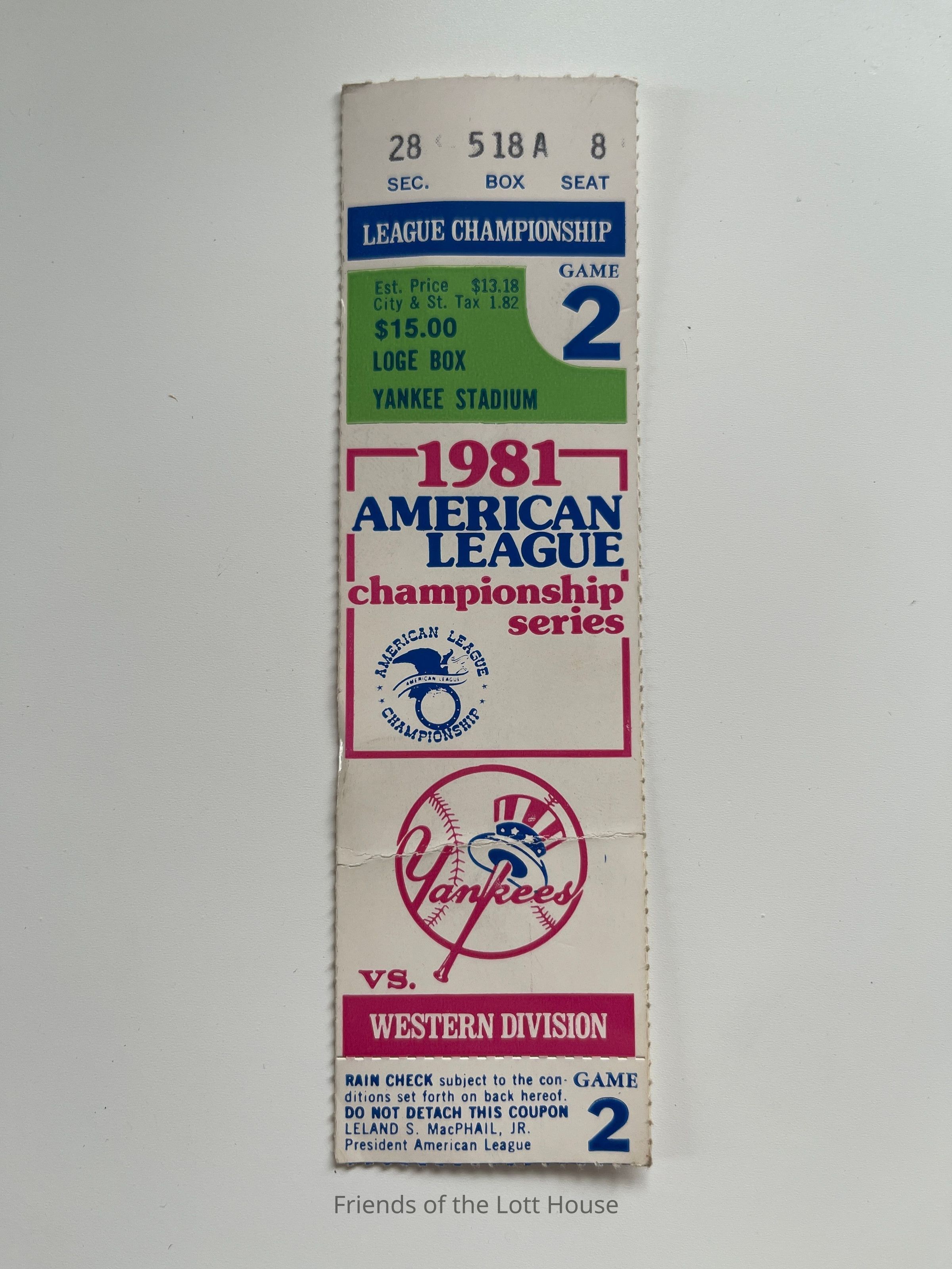 1981 American League Championship Series Game 2 Ticket