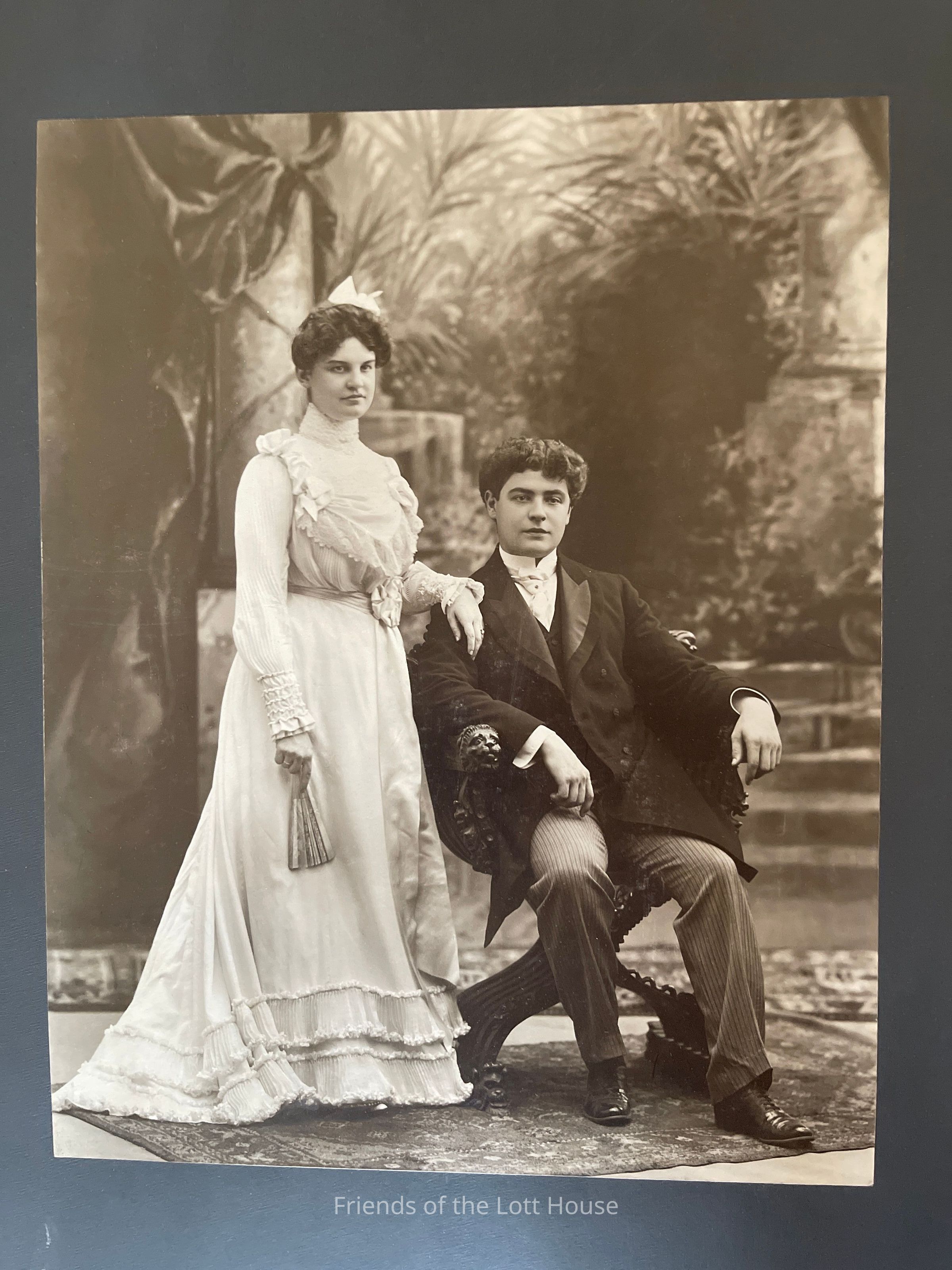 Portrait photograph of a young man and woman. Gashe Lott and James Schoonmaker, Has store tag on backCollection