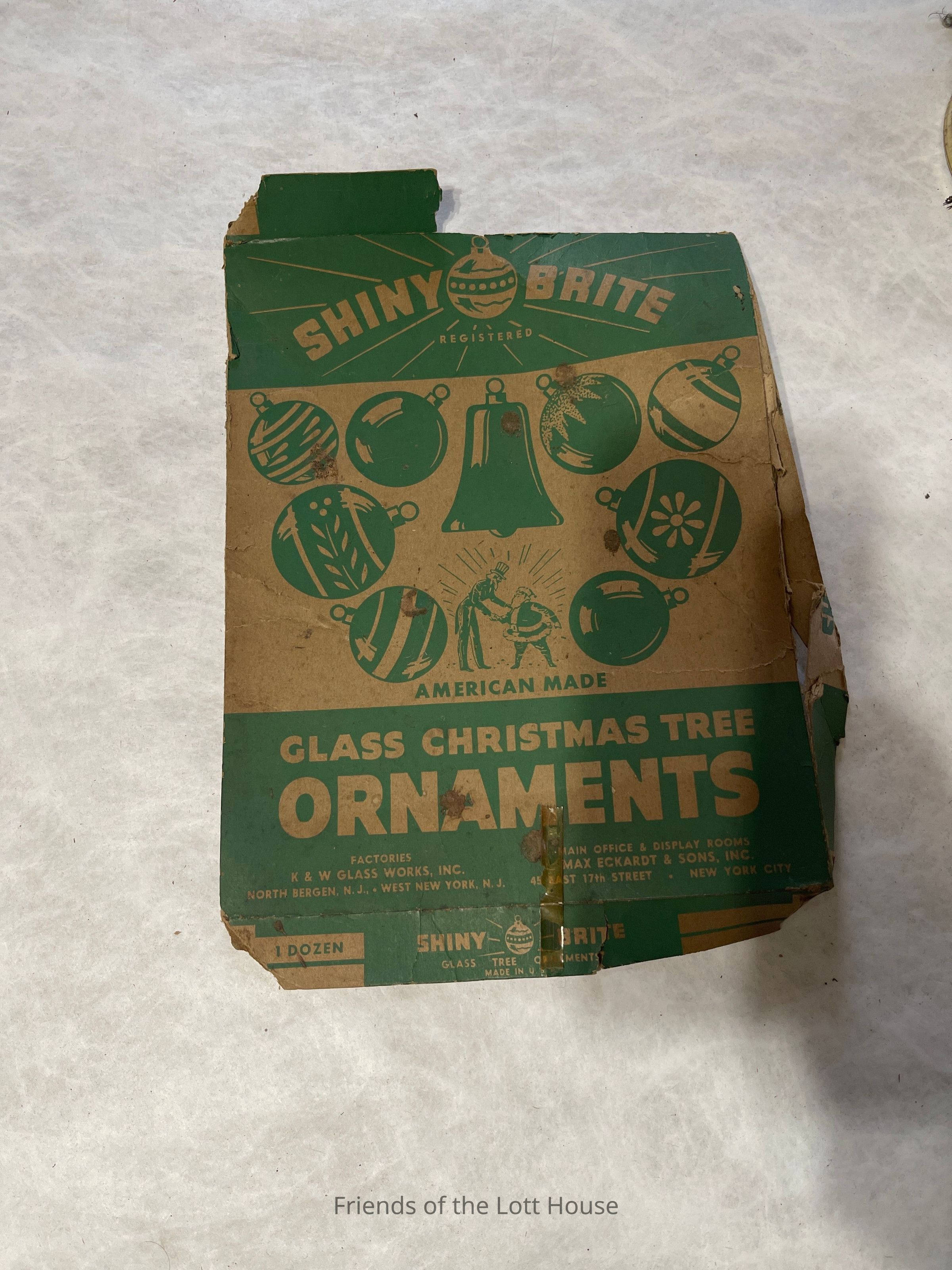Shiny Brite glass christmas tree ornamnets box lid made of cardboardLocation